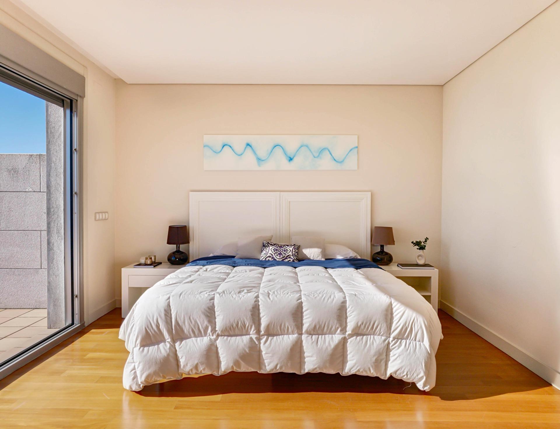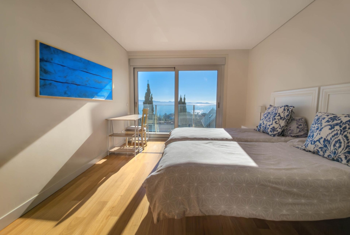 En la tercera planta, la suite principal se erige como un santuario privado con vistas inigualables a la Ría de Pontevedra. Una terraza expansiva se convierte en tu rincón privado de contemplación, mientras que un vestidor y un baño con detalles de alta gama completan esta experiencia única.