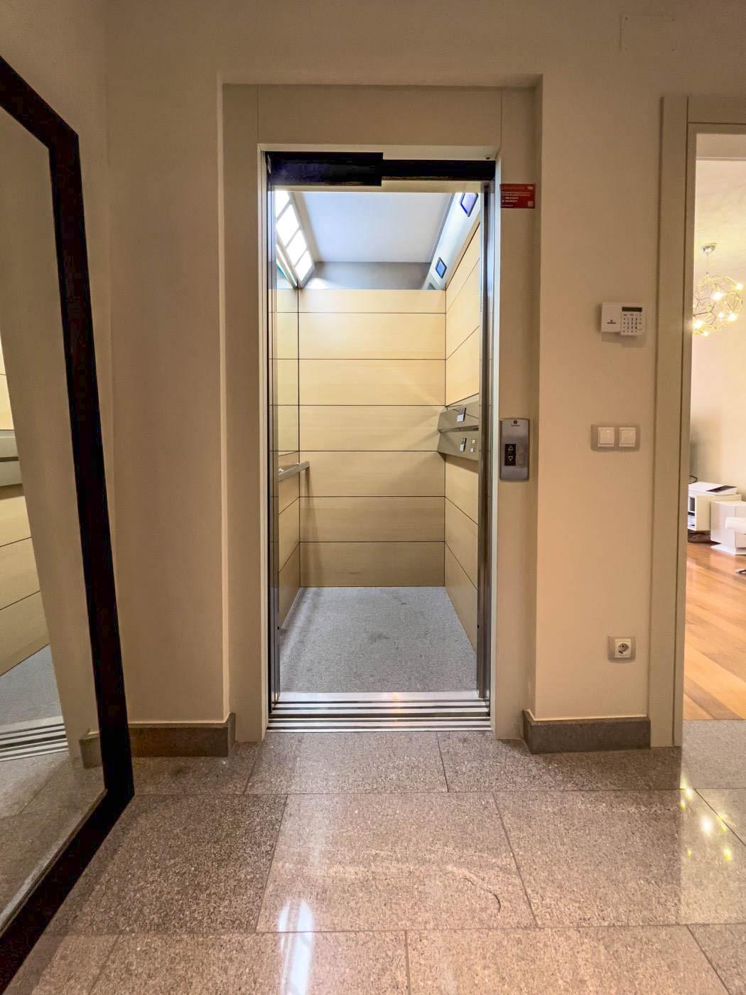 Esta joya arquitectónica de tres plantas cuenta con un ascensor privado que te eleva a cada nivel con facilidad, mientras que el garaje con capacidad para cinco vehículos y la entrada espaciosa te dan la bienvenida a tu refugio exclusivo.