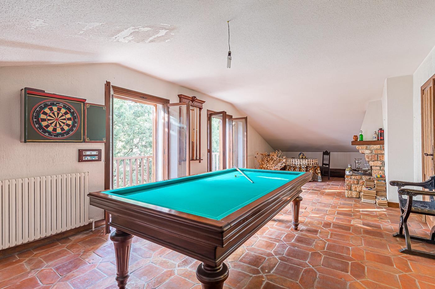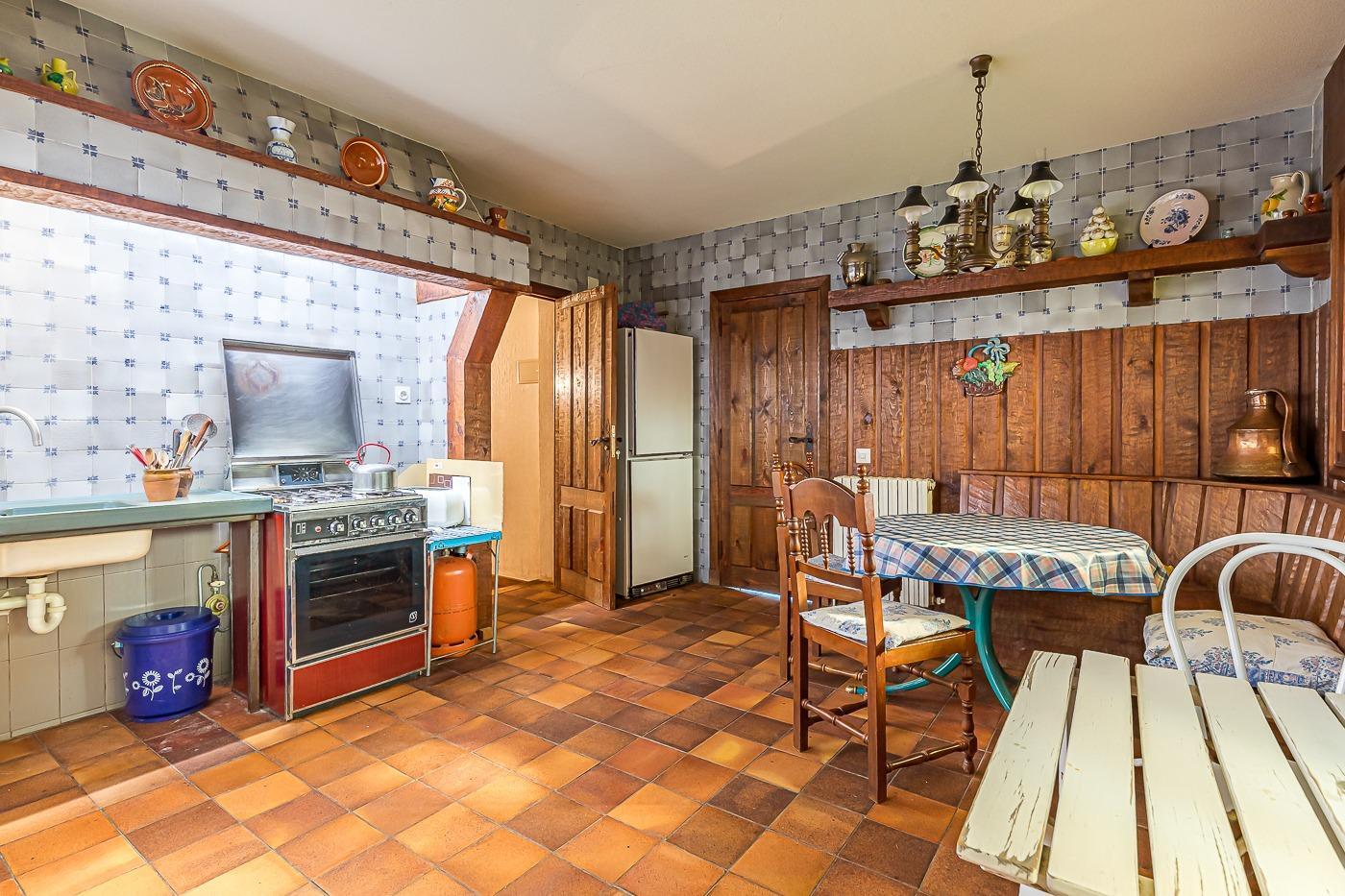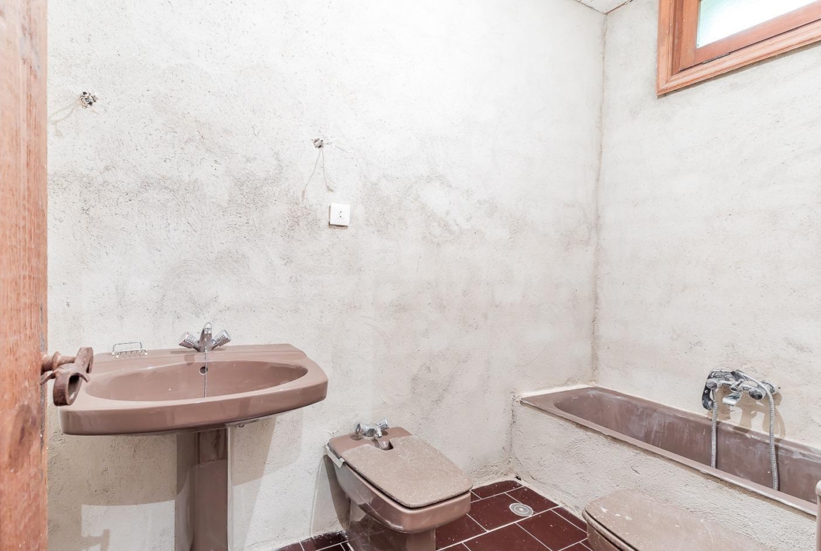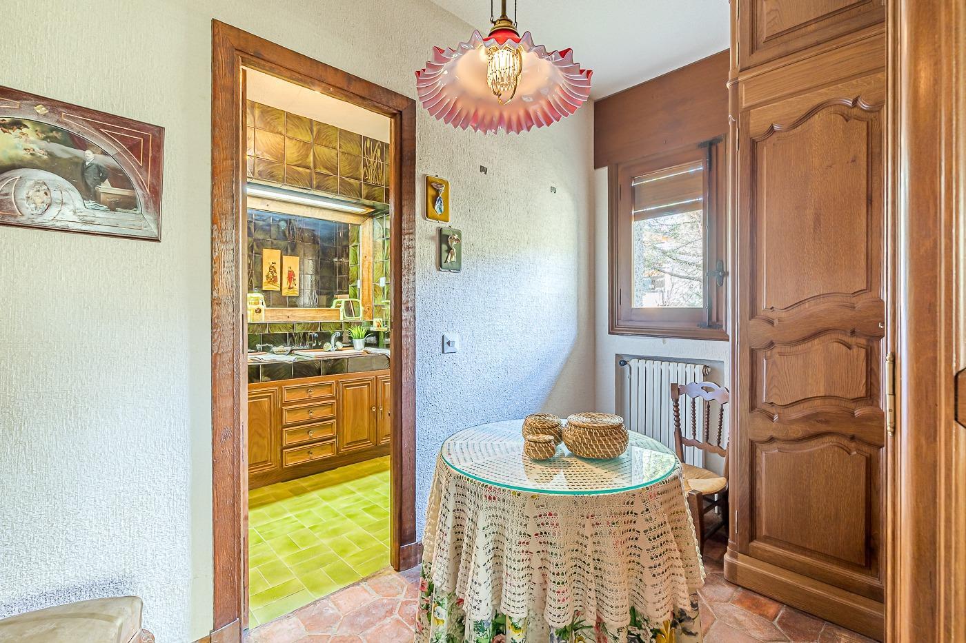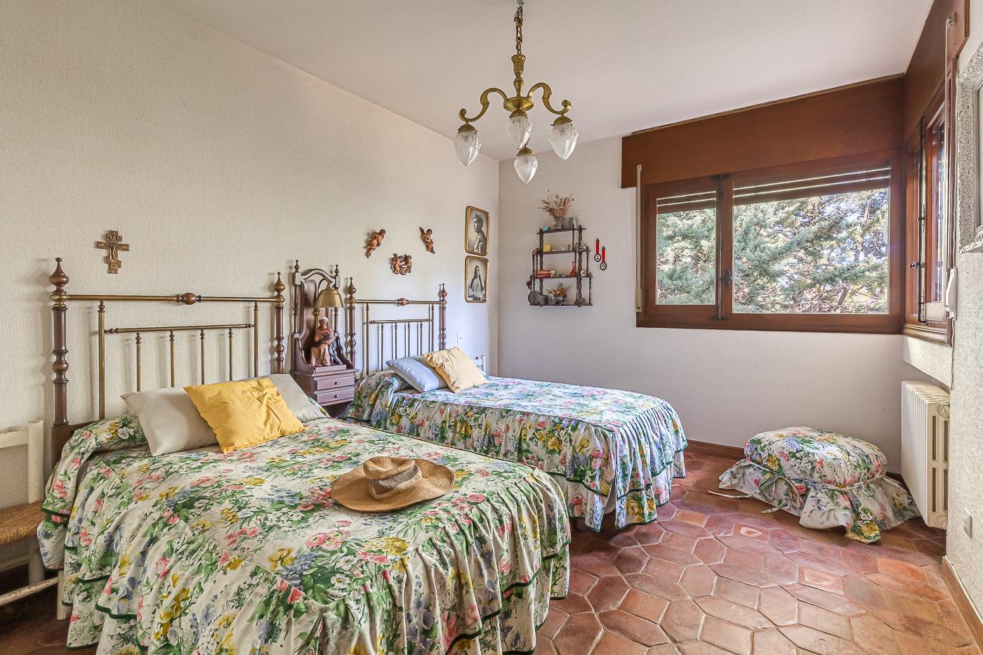 Esta casa unifamiliar se encuentra a la entrada del Pueblo de Navacerrada al lado de su embalse en una parcela individual de 1.326 metros, en su fachada esta la entrada al garaje y una terraza, por el lateral suben unas escaleras hacia la entrada principal por la que entramos a un recibidor desde el que de frente accedemos a un salón comedor con chimenea, acceso a la terraza y acceso también a la amplia cocina con despensa y una habitación secundaria con un baño, este a su vez se le puede dar uso de baño de cortesía. Desde el recibidor tenemos de frente a la derecha otra puerta que separa las escaleras que dan acceso a la planta alta y baja en la que encontramos el garaje, la sala de calderas y un par de estancias de gran tamaño para hacer habitaciones, una bodega, taller, baño, despensa….