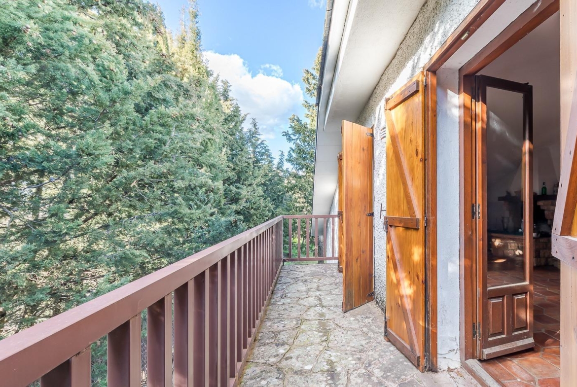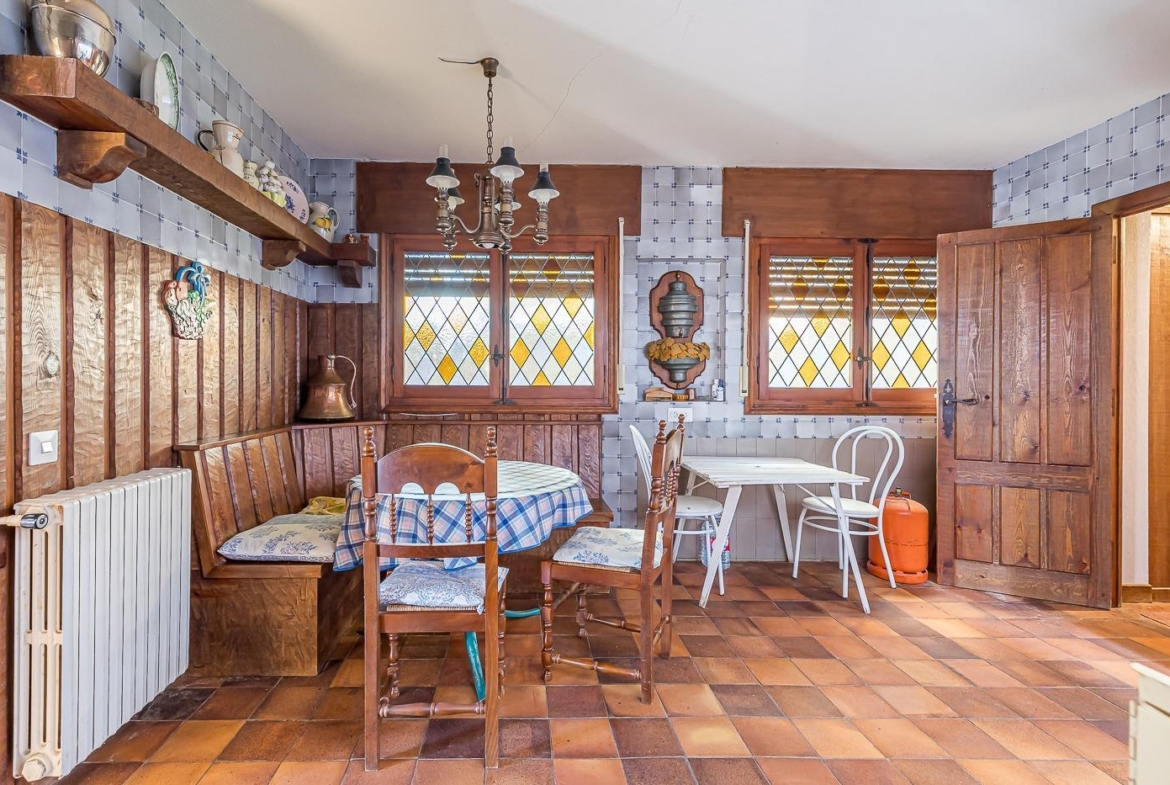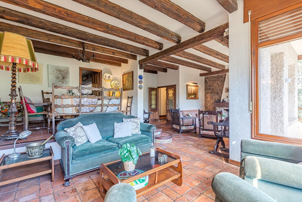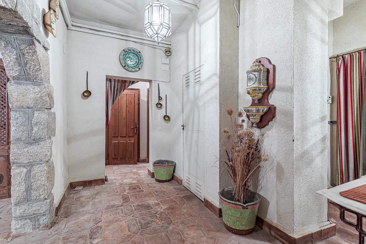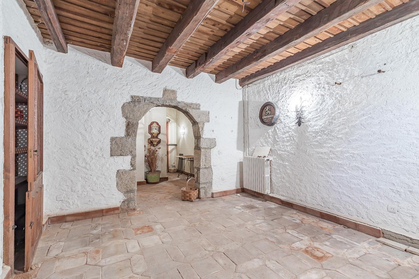 Esta casa unifamiliar se encuentra a la entrada del Pueblo de Navacerrada al lado de su embalse en una parcela individual de 1.326 metros, en su fachada esta la entrada al garaje y una terraza, por el lateral suben unas escaleras hacia la entrada principal por la que entramos a un recibidor desde el que de frente accedemos a un salón comedor con chimenea, acceso a la terraza y acceso también a la amplia cocina con despensa y una habitación secundaria con un baño, este a su vez se le puede dar uso de baño de cortesía. Desde el recibidor tenemos de frente a la derecha otra puerta que separa las escaleras que dan acceso a la planta alta y baja en la que encontramos el garaje, la sala de calderas y un par de estancias de gran tamaño para hacer habitaciones, una bodega, taller, baño, despensa….