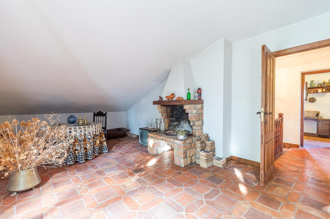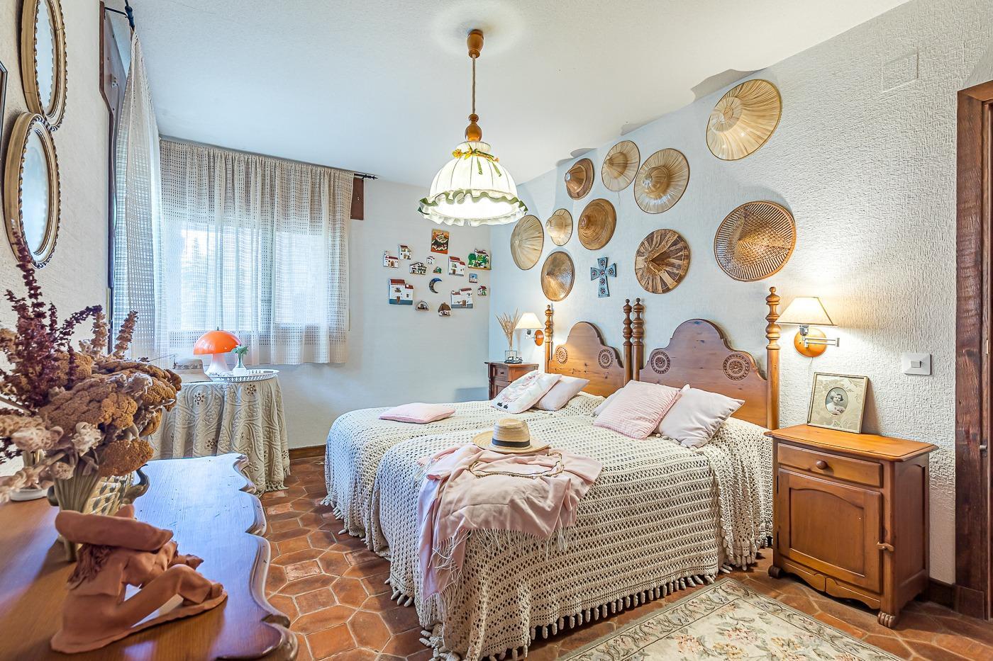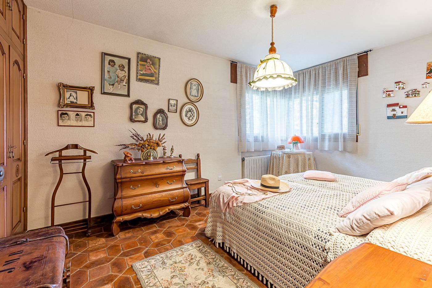 Desde el recibidor a mano derecha pasamos por un pasillo a tres habitaciones, al fondo de este está el principal con vestidor y baño en suite, a la derecha un dormitorio y un baño completo y a la izquierda el dormitorio que comunica con la cocina. Por la escalera subimos a la planta superior en la que hay una habitación con baño incluido y zona de estudio, un pequeño desván aprovechando la bajo cubierta y una sala de juegos con terraza con vistas al jardín.