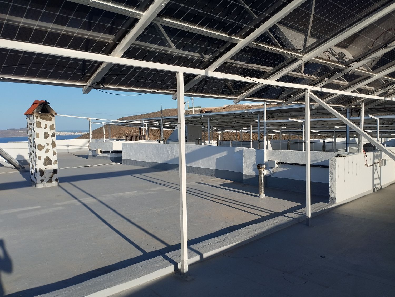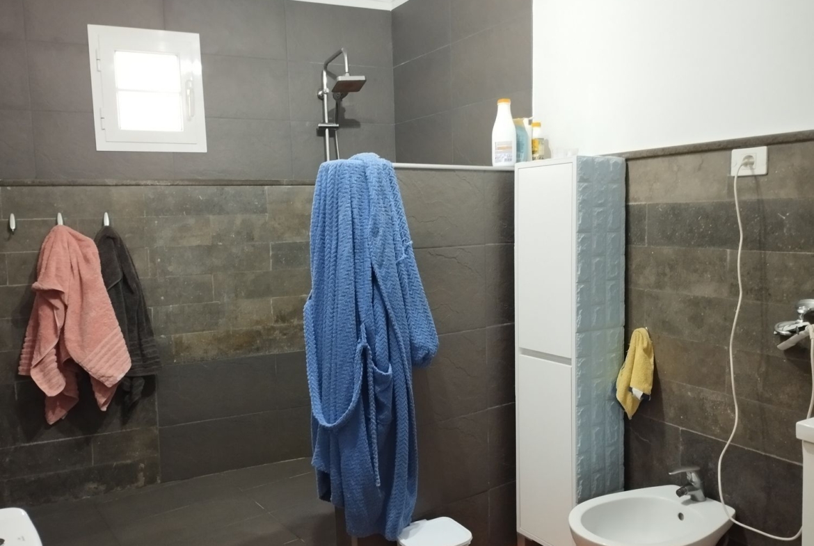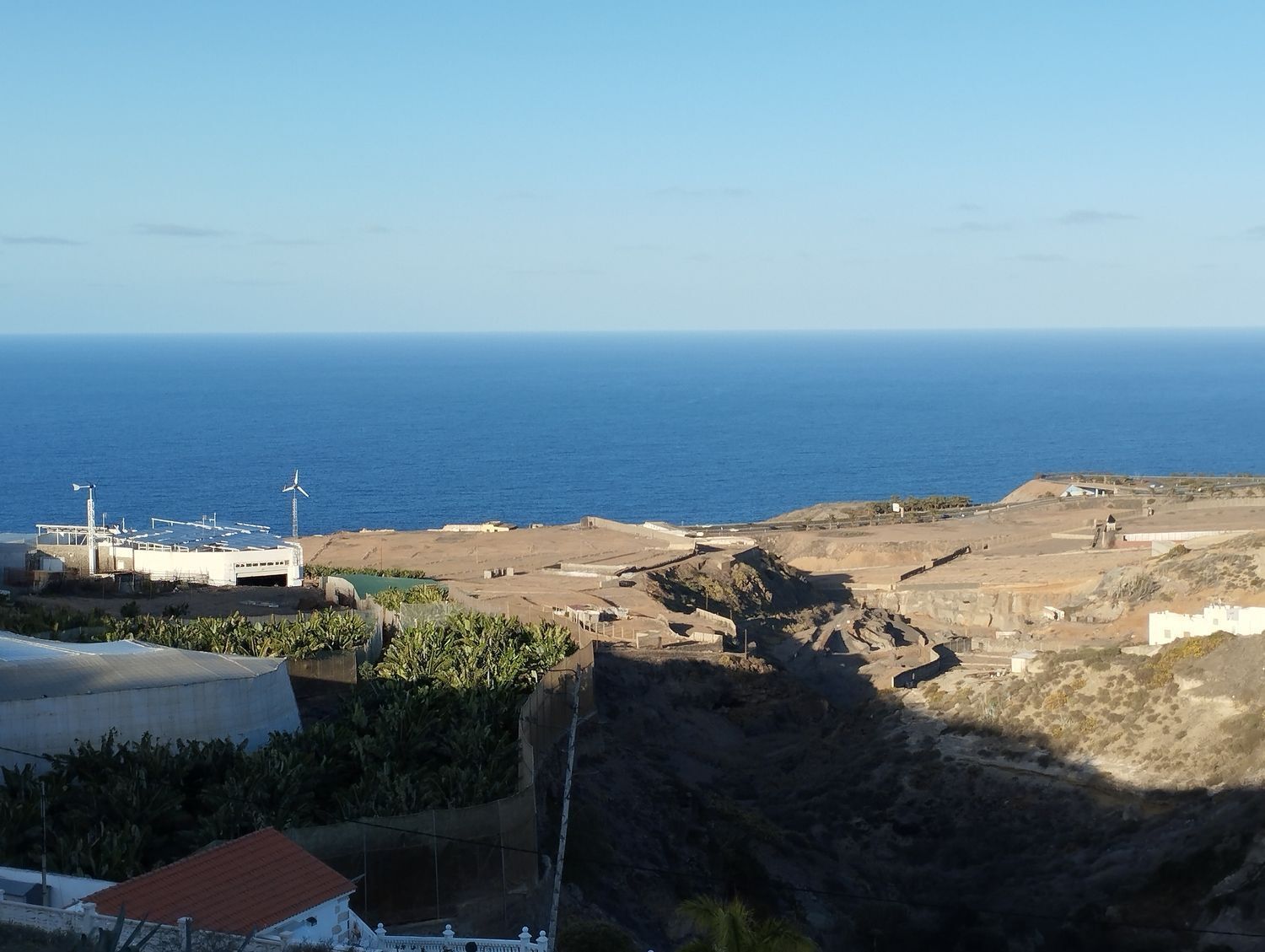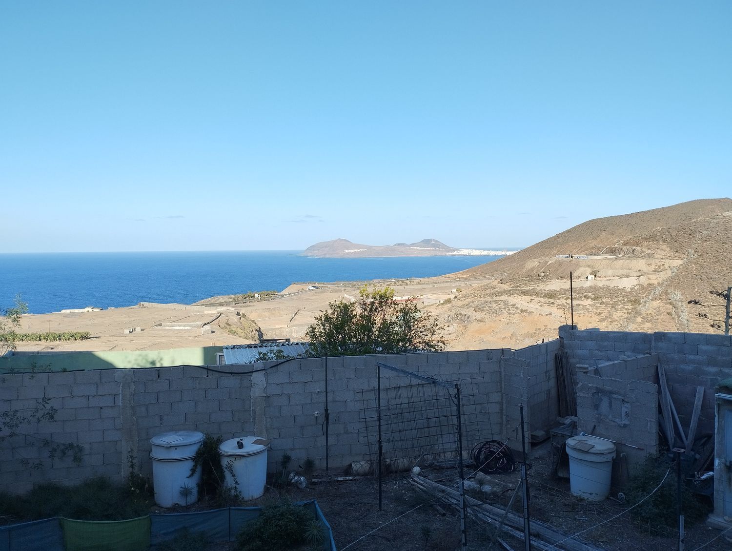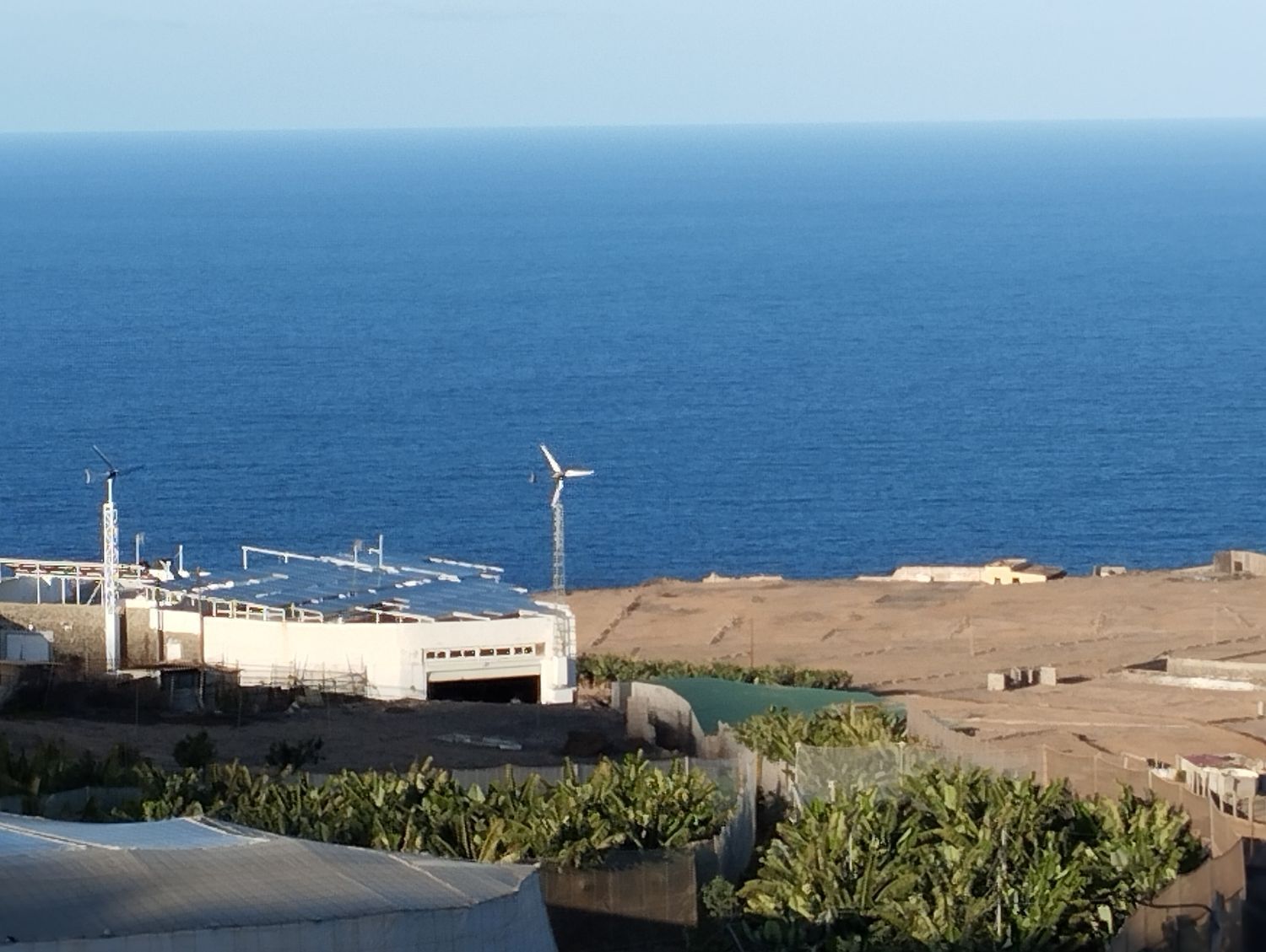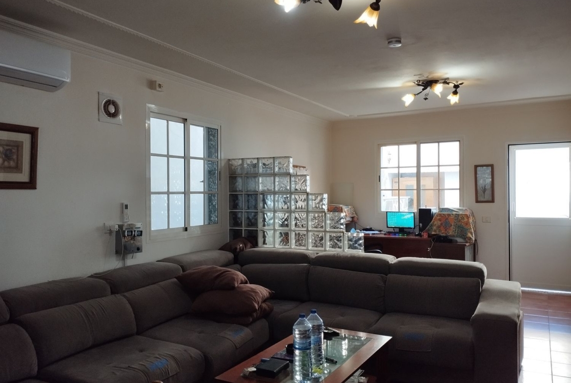 Espectacular finca con unas vistas maravillosas en la zona de Cardones, Arucas. Está compuesta por un chalet más una nave industrial y un trozo de terreno rústico. La vivienda está compuesta por tres dormitorios, dos baños, un aseo, salón, cocina y solana. Equipado con aire acondicionado y chimenea. Desde el salón salimos al patio donde nos encontramos con la zona de recreo, que dispone de barbacoa, fuente y piscina con bomba de calor. Toda la propiedad está videovigilada con 32 cámaras. A la vivienda se accede desde el garaje que tiene capacidad para dos coches y varias motos. Justo al lado de la vivienda tenemos una nave con despacho de unos 355 metros cuadrados aproximadamente con puerta de garaje. Instalado y en funcionamiento de aerogeneradores y placas solares para la producción y almacenamiento en baterías de litio de energía solar para la vivienda y la nave. Como suplemento a la misma, por si hiciera falta, dispone de un grupo electrógeno complementario en caso de mal tiempo.