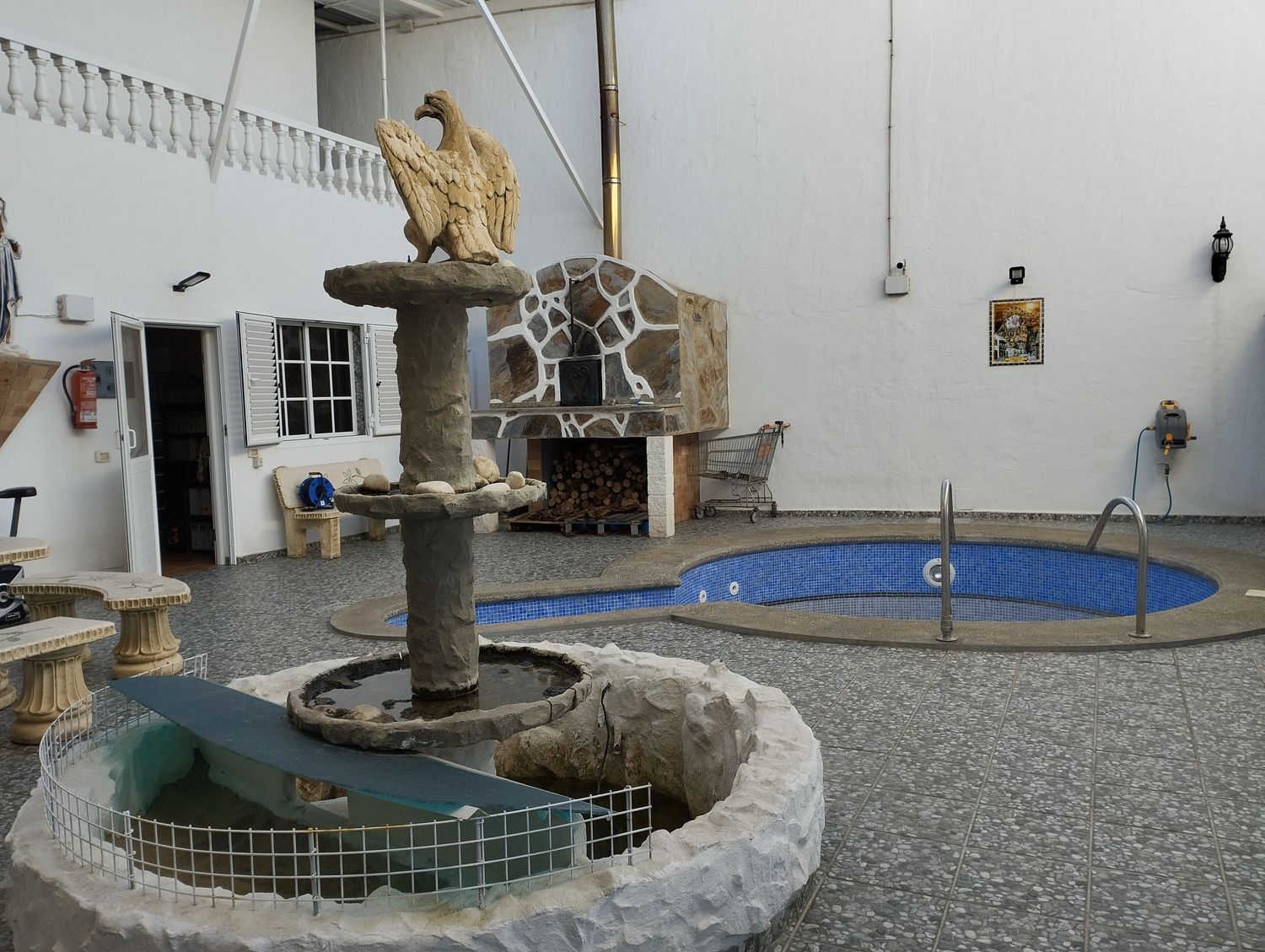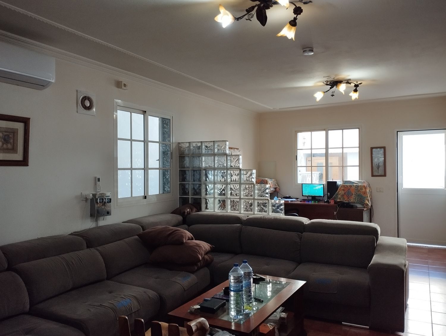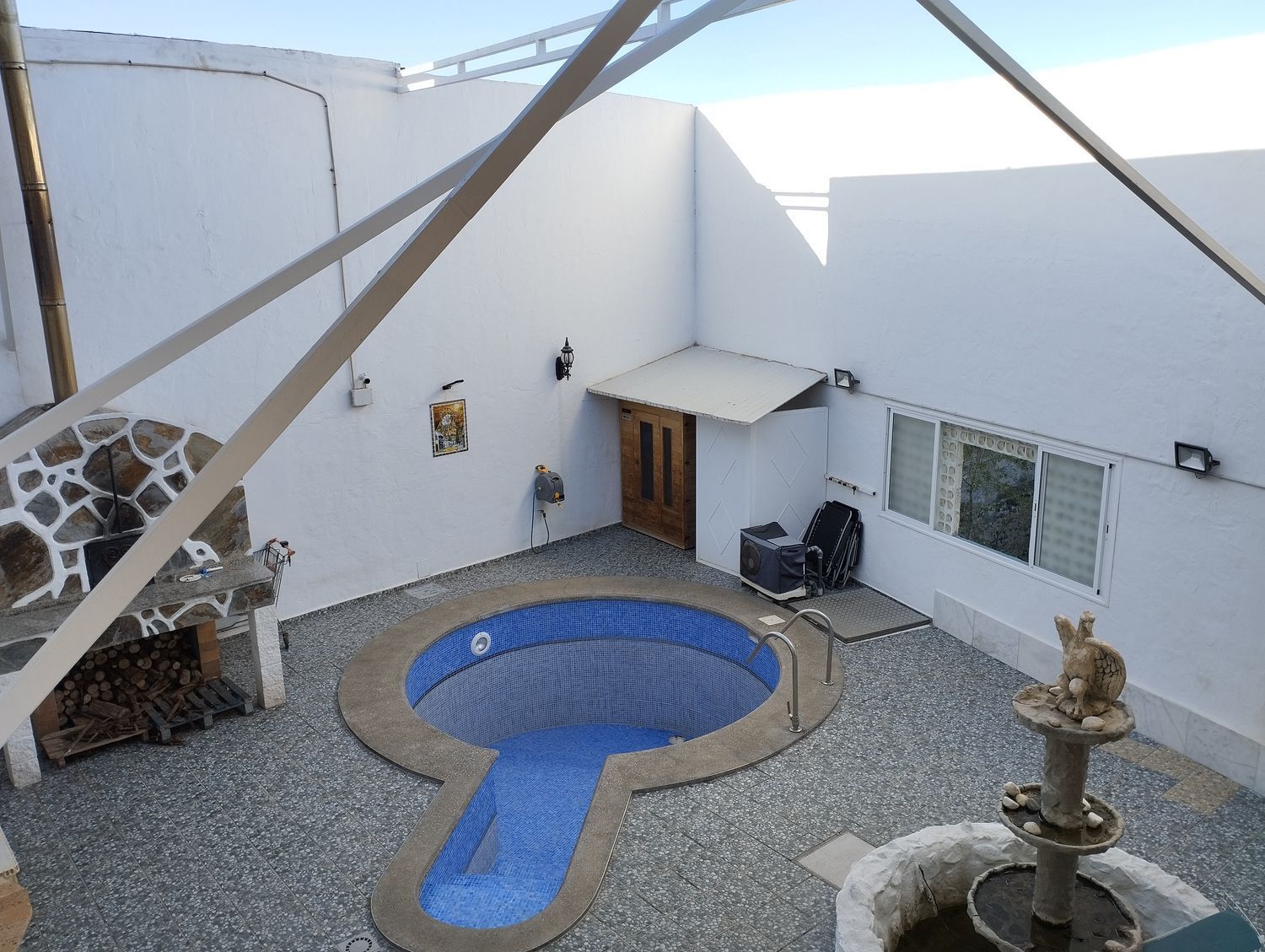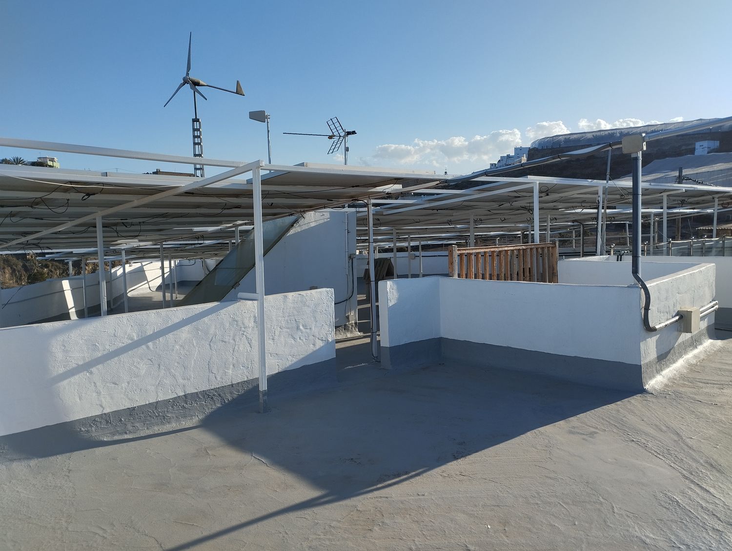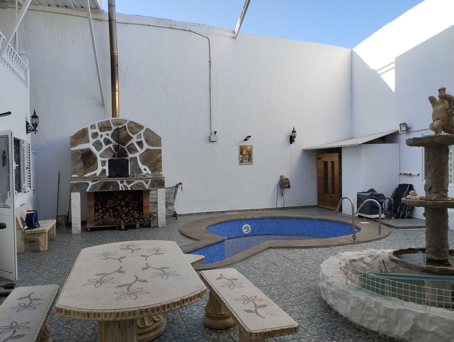 Espectacular finca con unas vistas maravillosas en la zona de Cardones, Arucas. Está compuesta por un chalet más una nave industrial y un trozo de terreno rústico. La vivienda está compuesta por tres dormitorios, dos baños, un aseo, salón, cocina y solana. Equipado con aire acondicionado y chimenea. Desde el salón salimos al patio donde nos encontramos con la zona de recreo, que dispone de barbacoa, fuente y piscina con bomba de calor. Toda la propiedad está videovigilada con 32 cámaras. A la vivienda se accede desde el garaje que tiene capacidad para dos coches y varias motos. Justo al lado de la vivienda tenemos una nave con despacho de unos 355 metros cuadrados aproximadamente con puerta de garaje. Instalado y en funcionamiento de aerogeneradores y placas solares para la producción y almacenamiento en baterías de litio de energía solar para la vivienda y la nave. Como suplemento a la misma, por si hiciera falta, dispone de un grupo electrógeno complementario en caso de mal tiempo.