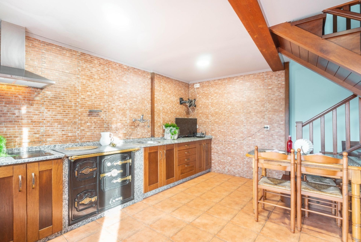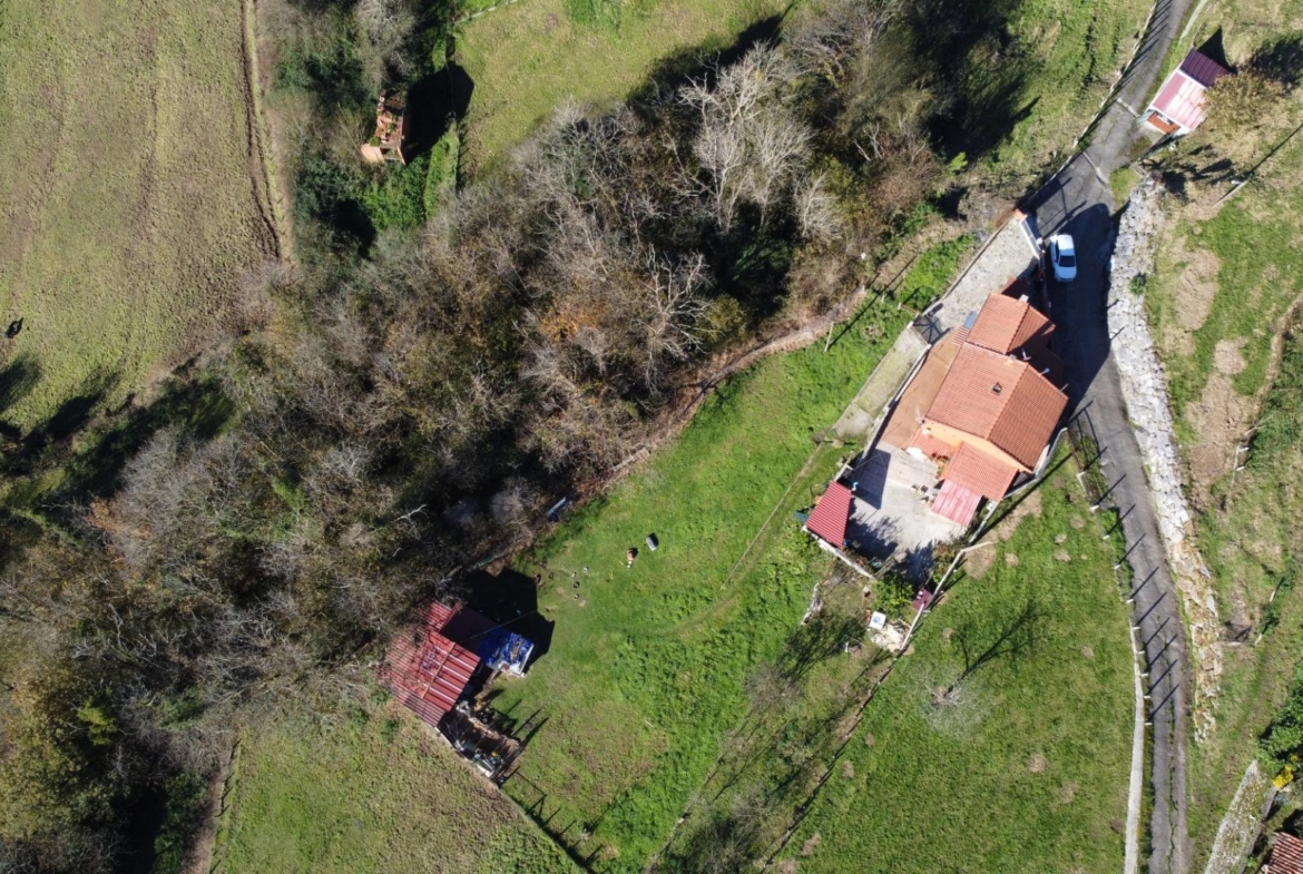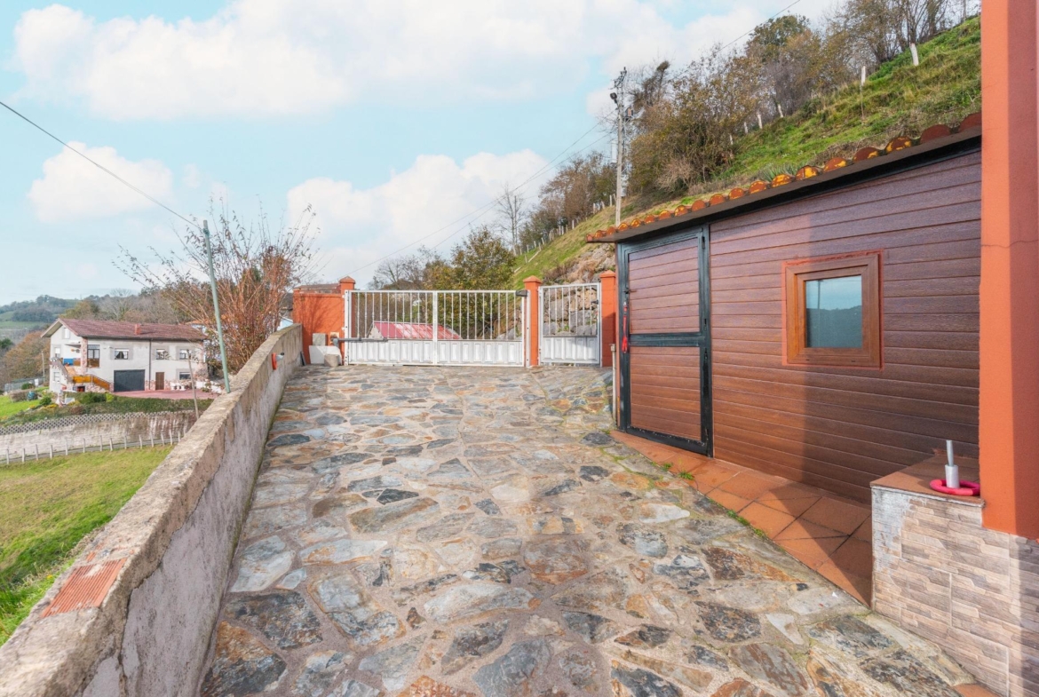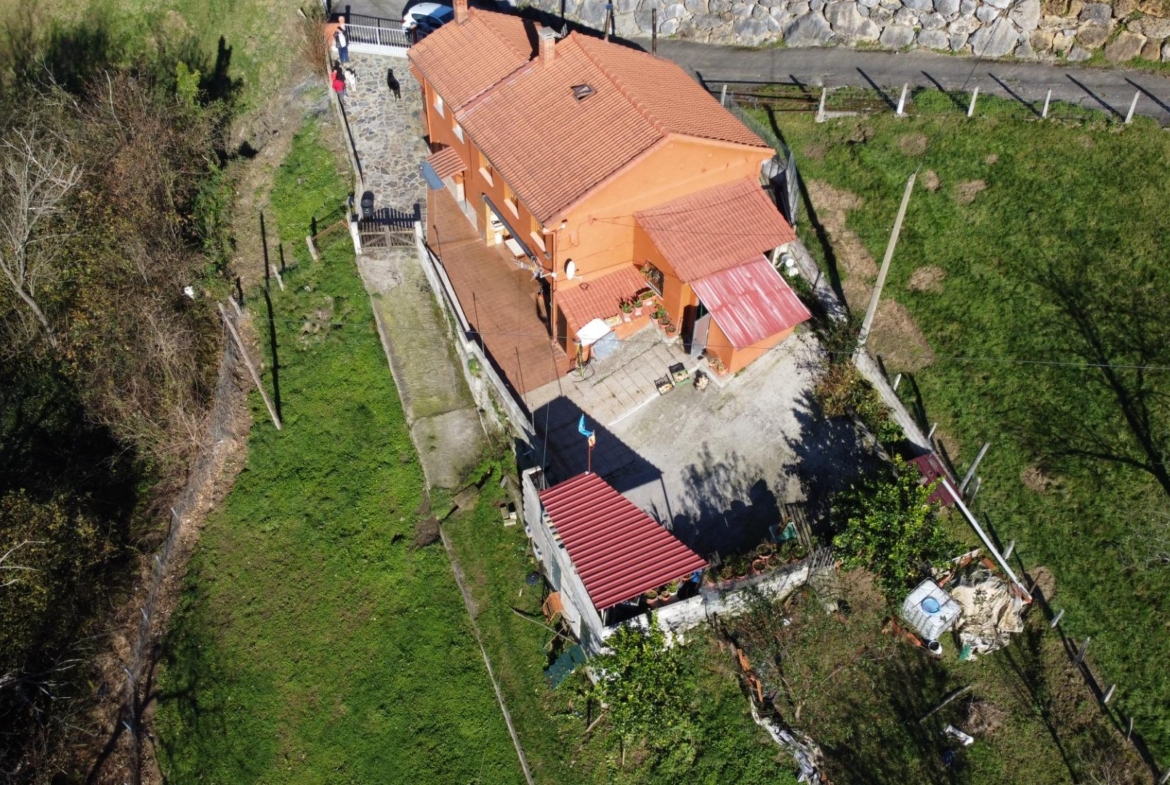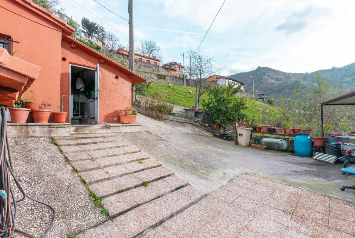 En el exterior nos encontramos un baño con ducha y lavadora, garaje para 1 coche y parte alta independiente para almacenamiento y rodeada de finca propia, las puertas de entrada a las casas son de madera de cuarteron independientes, radiadores de hierro fundido, ventanas de PVC madera oscilantes y cristal doble crimalit, instalación eléctrica nueva, lavadero exterior, fachada pintada nueva, tejados y canalones en buen estado, cuarto de deposito de gasoil de 500 litros.