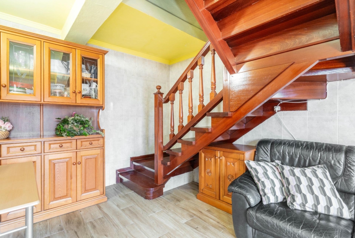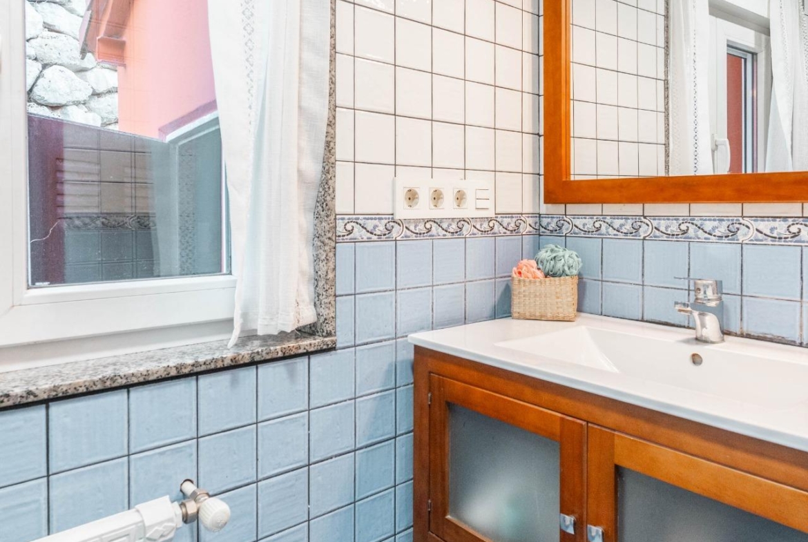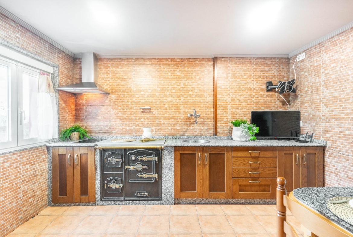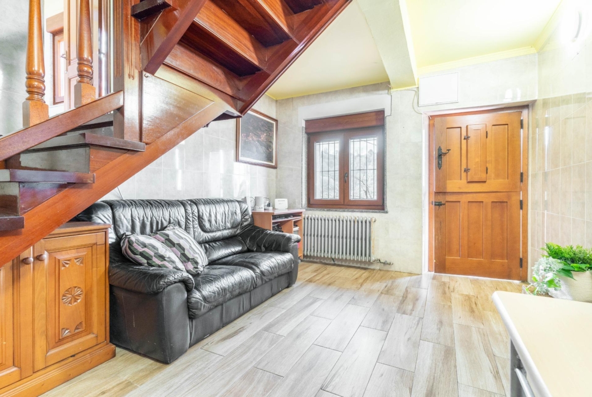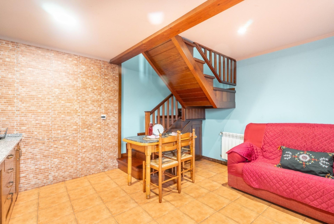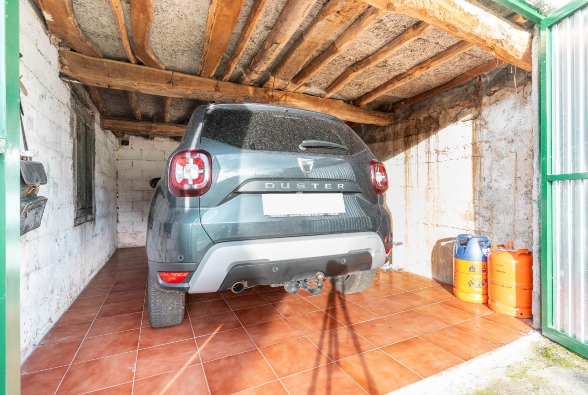 En el exterior nos encontramos un baño con ducha y lavadora, garaje para 1 coche y parte alta independiente para almacenamiento y rodeada de finca propia, las puertas de entrada a las casas son de madera de cuarteron independientes, radiadores de hierro fundido, ventanas de PVC madera oscilantes y cristal doble crimalit, instalación eléctrica nueva, lavadero exterior, fachada pintada nueva, tejados y canalones en buen estado, cuarto de deposito de gasoil de 500 litros.
