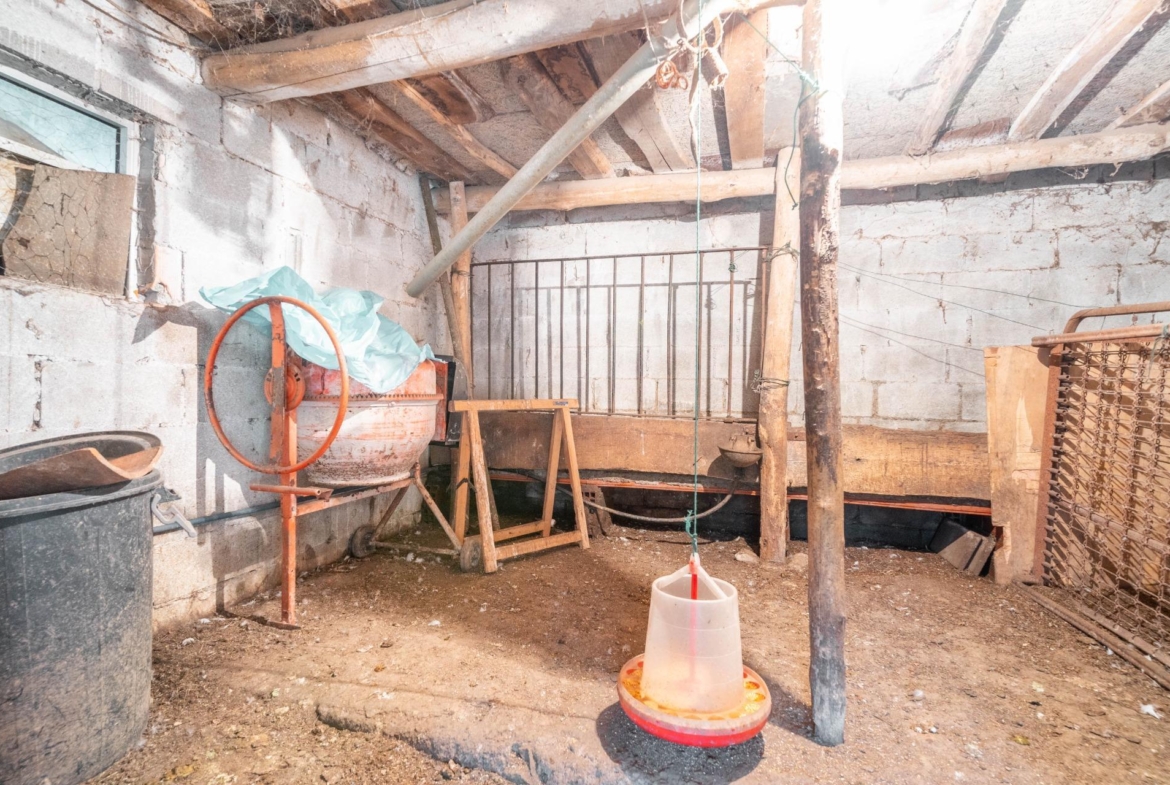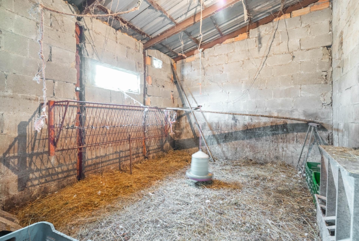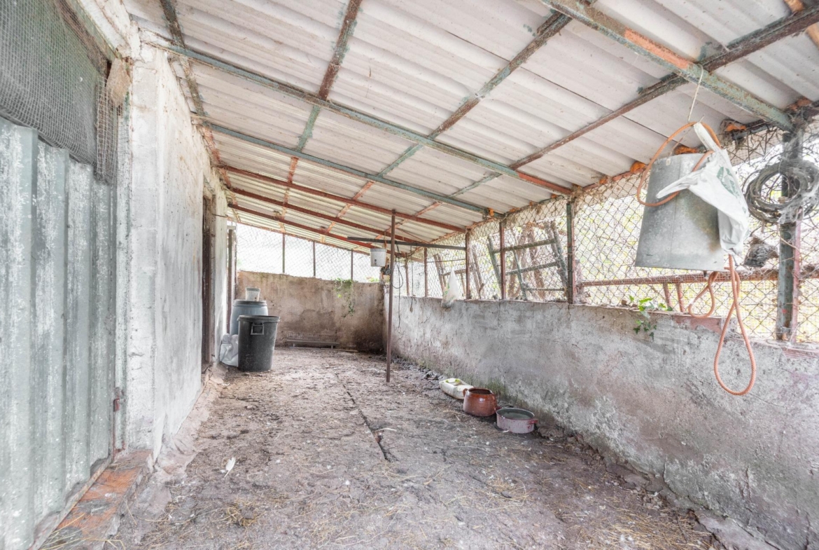 En su finca se encuentra limonares, manzanos y piescales, 4 chabolas de corrales para gallinas, ocas y ganso, y además una tenada de hierba que se utiliza como cuarto de aperos y herramientas y una hormigonera eléctrica. También tiene un aljibe de agua de 1000 litros.