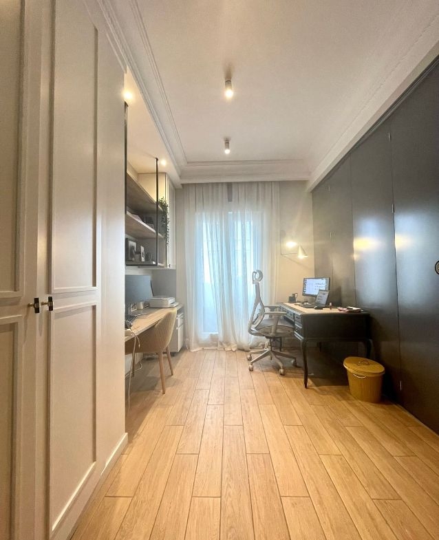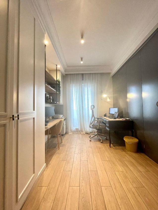 El piso hace esquina y esta en una planta alta, por lo que disfruta de abundante luz natural a lo largo de todo el dia. La vivienda tiene techos altos, consta de amplio salón- comedor, home- Office polivalente que puede ser integrado en el comedor mediante pared móvil, cocina de diseño semi- abierta con barra y con una despensa espaciosa y cuarto de lavado. En la zona de descanso nos encontramos con un dormitorio principal con baño suite y vestidor, tres dormitorios dobles muy amplios que comparten otro baño. Además, cuenta con habitación de servicios con baño en suite.