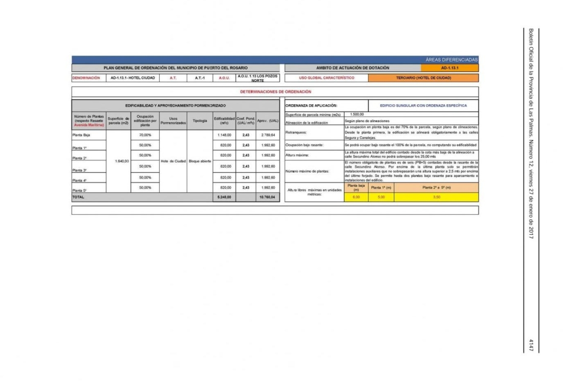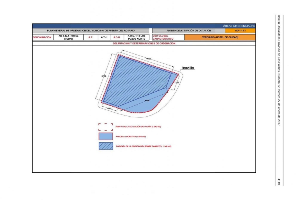 La parcela hotelera consta de una superficie total de 1670 m2. Se puede construir un total de 5.248 metros cuadrados repartidos en planta baja y 5 plantas más.