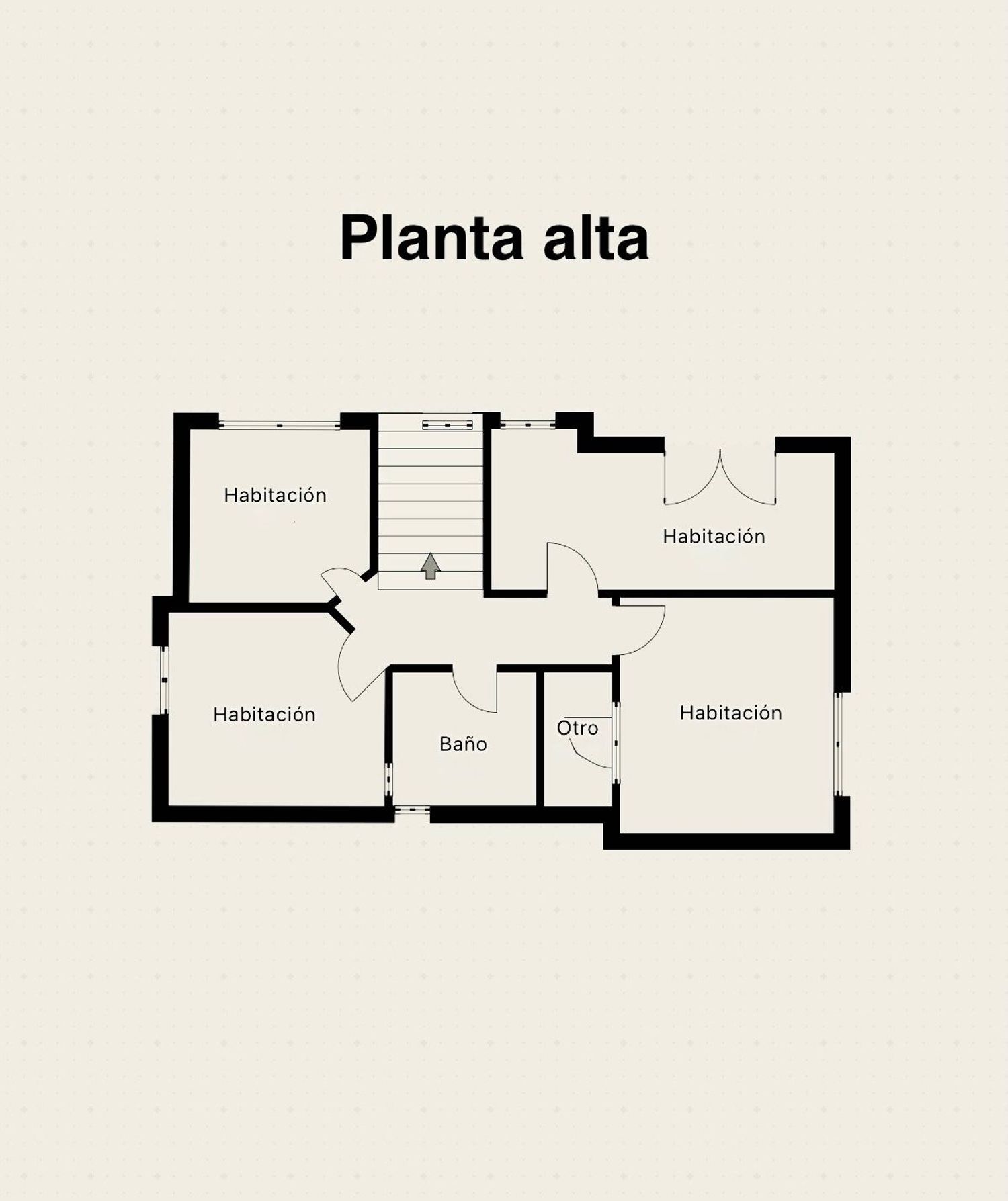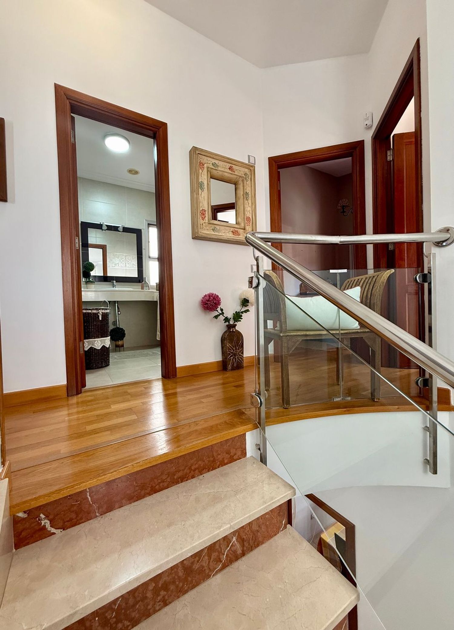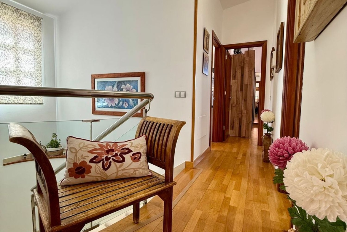 Planta alta: baño completo y 4 dormitorios, todos exteriores. Uno con vestidor, otro con terraza privada.