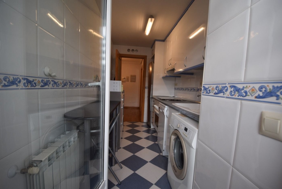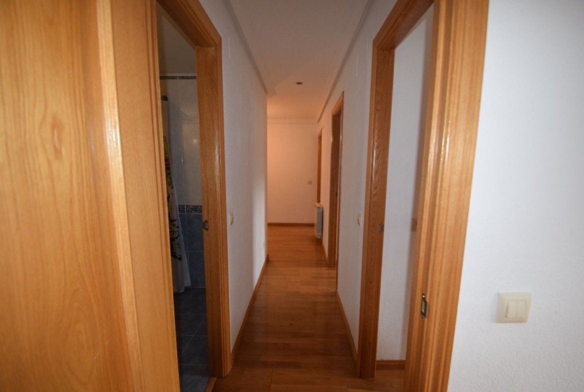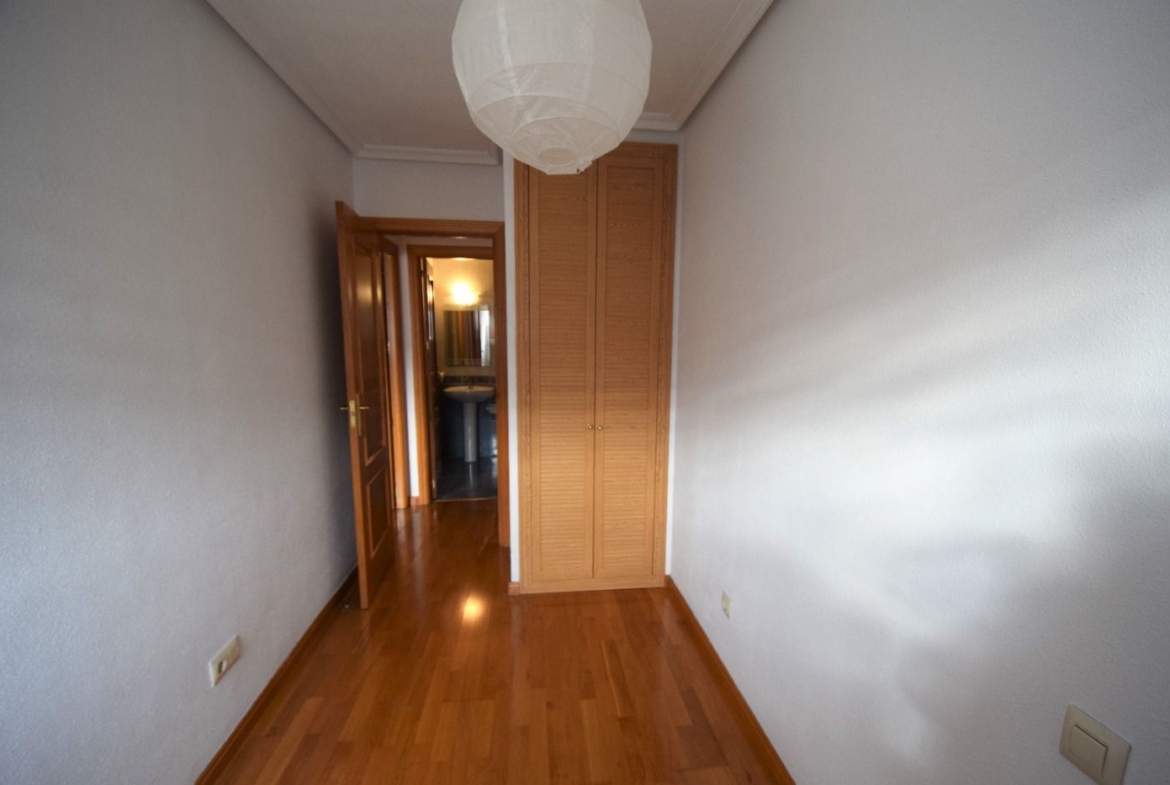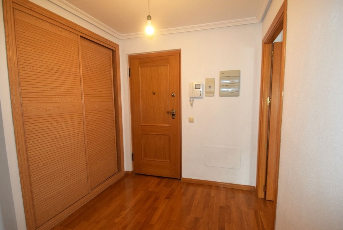 La vivienda cuenta con un amplio recibidor con armario auxiliar, tres dormitorios, todos ellos con armarios empotrados, y dos cuartos de baño, uno de ellos en suite. Dispone también de una cocina independiente y un salón con salida a una bonita terraza con vistas a las zonas comunes.