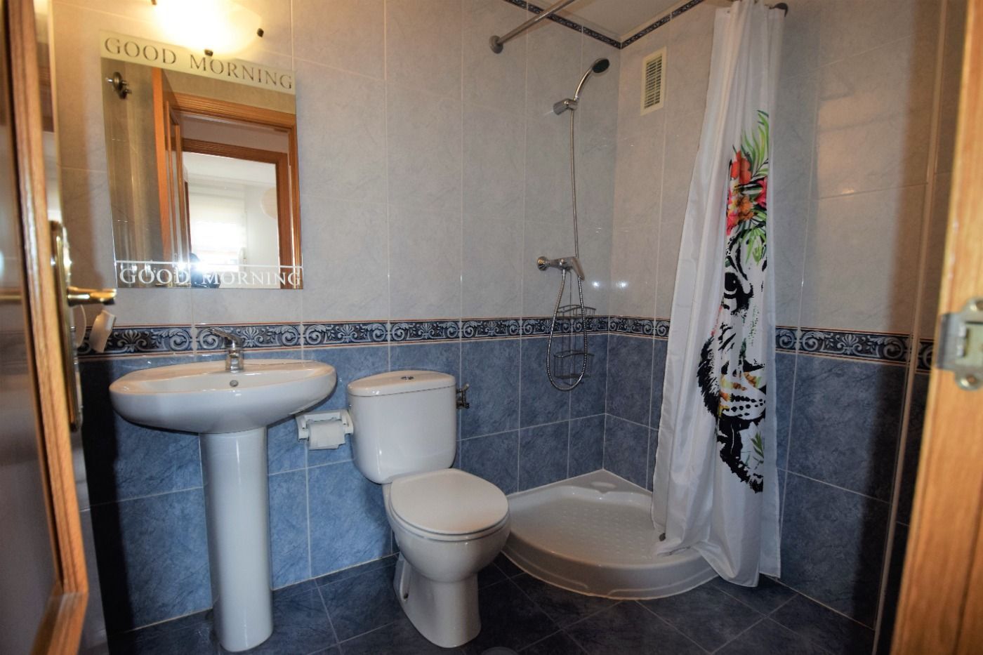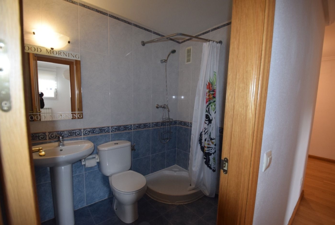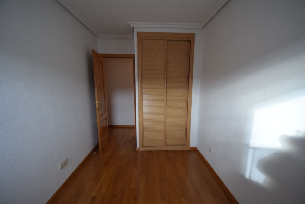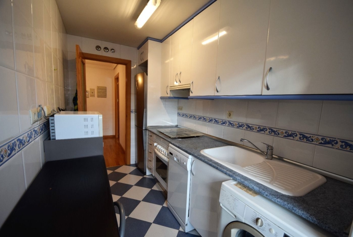 La vivienda cuenta con un amplio recibidor con armario auxiliar, tres dormitorios, todos ellos con armarios empotrados, y dos cuartos de baño, uno de ellos en suite. Dispone también de una cocina independiente y un salón con salida a una bonita terraza con vistas a las zonas comunes.