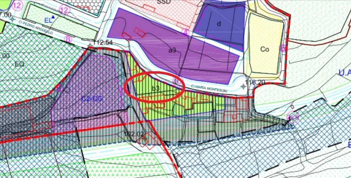 El solar da a tres calles por lo que tiene tres fachadas y es de normativa b3, al tener una calle en bajada con un desnivel respecto a la otra calle da la posibilidad de hacer el la entrada de garaje sin mucho esfuerzo.
