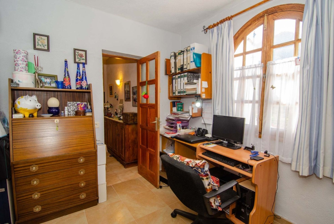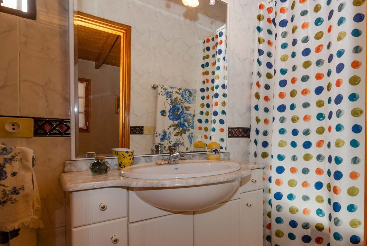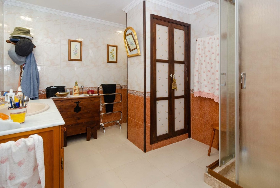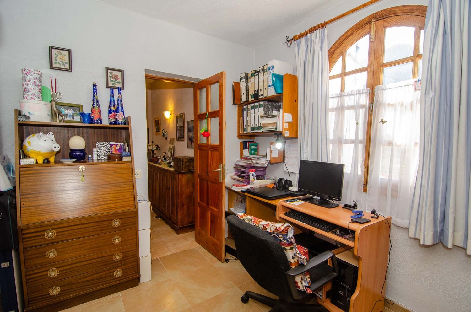 La vivienda, en una única planta dispone de tres dormitorios, amplio salón continuado con una terraza cubierta con vistas, cocina comedor, dos baños, uno de ellos en un dormitorio. Una soleada terraza. En el sótano dispone de dos cuartos, uno se usa ahora mismo como taller y otro como trastero. Tanto en el salón como en uno de los dormitorios hay aire acondicionado.