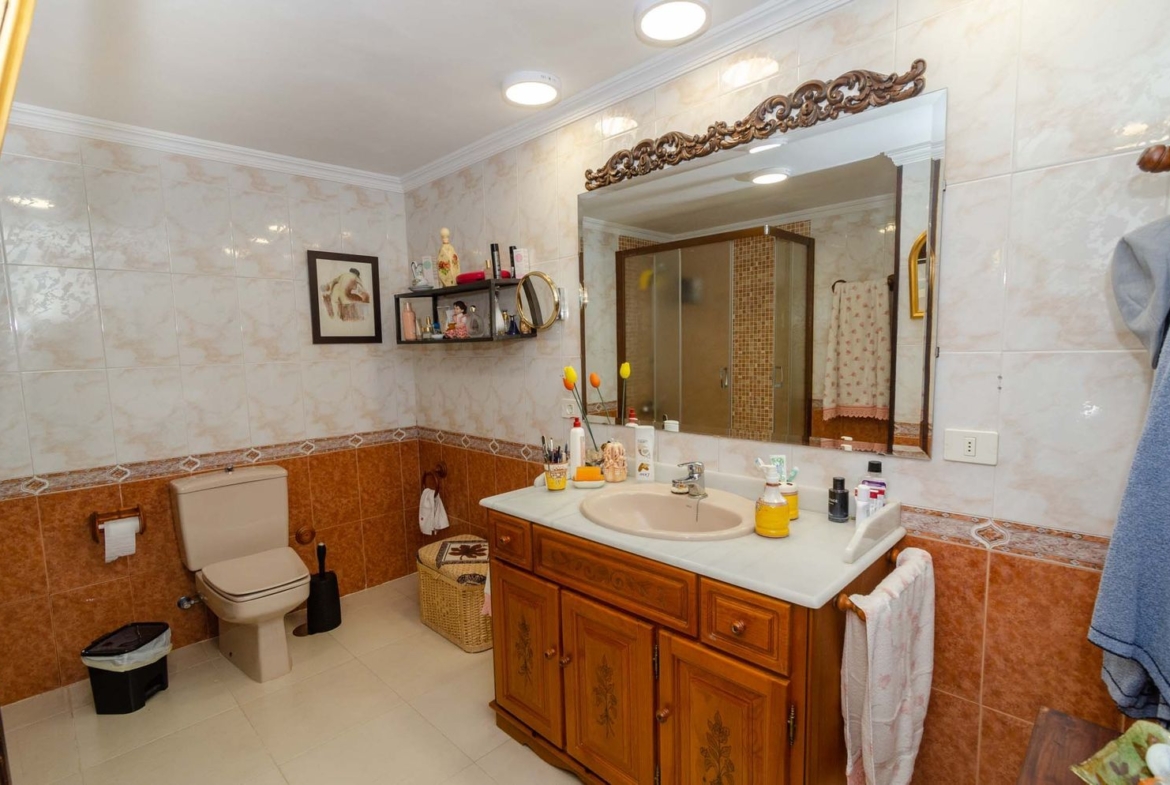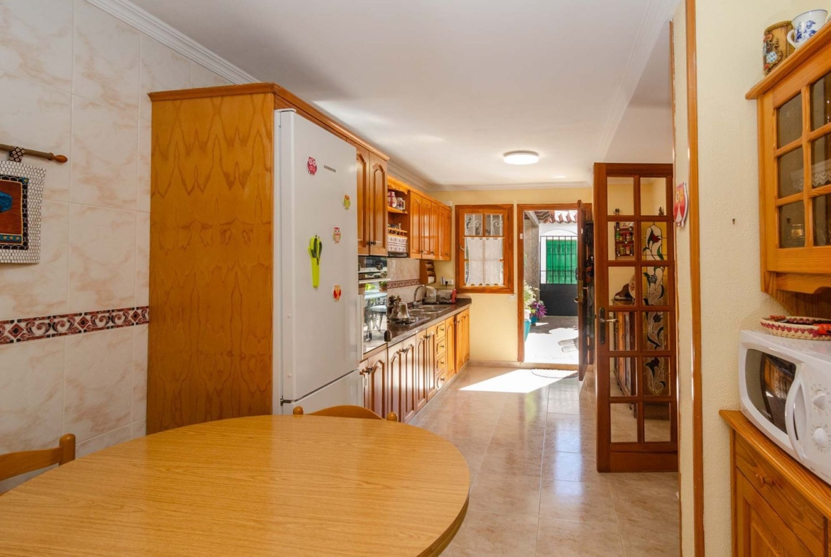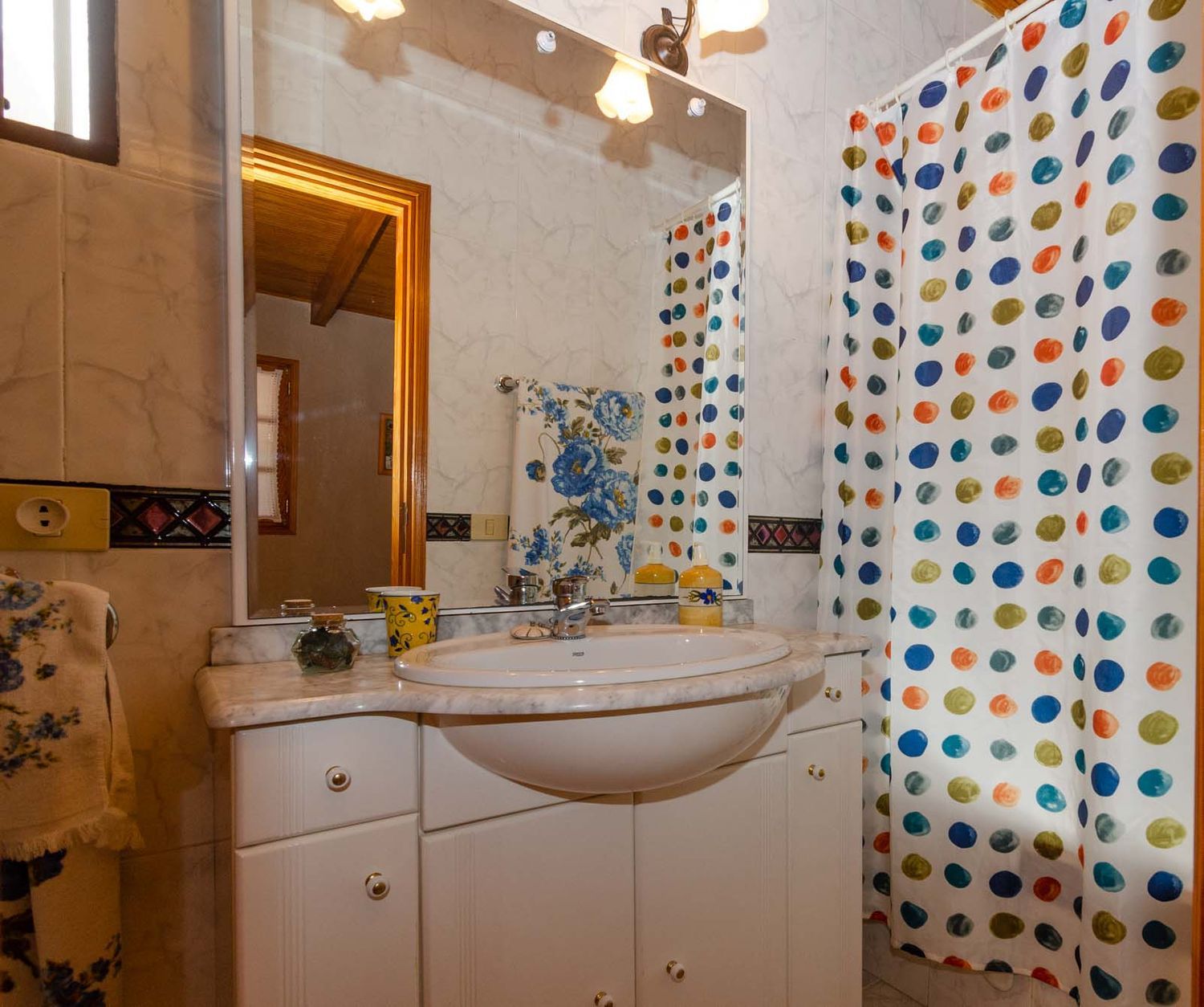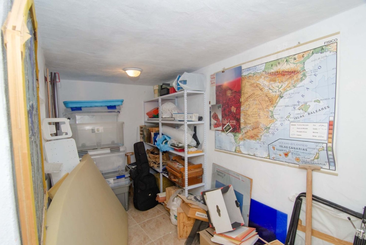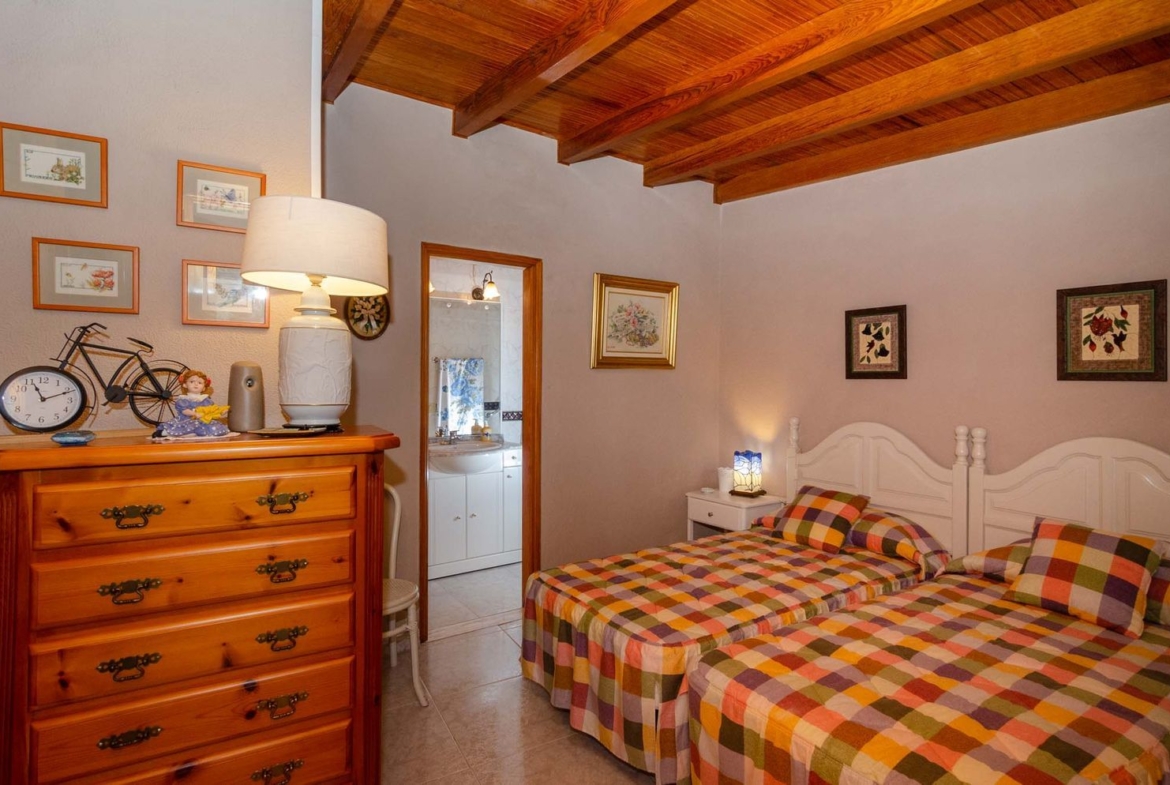 La vivienda, en una única planta dispone de tres dormitorios, amplio salón continuado con una terraza cubierta con vistas, cocina comedor, dos baños, uno de ellos en un dormitorio. Una soleada terraza. En el sótano dispone de dos cuartos, uno se usa ahora mismo como taller y otro como trastero. Tanto en el salón como en uno de los dormitorios hay aire acondicionado.