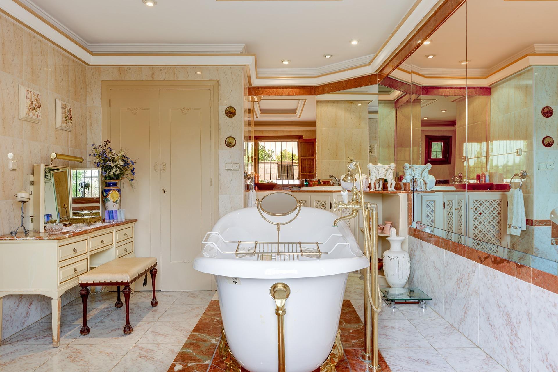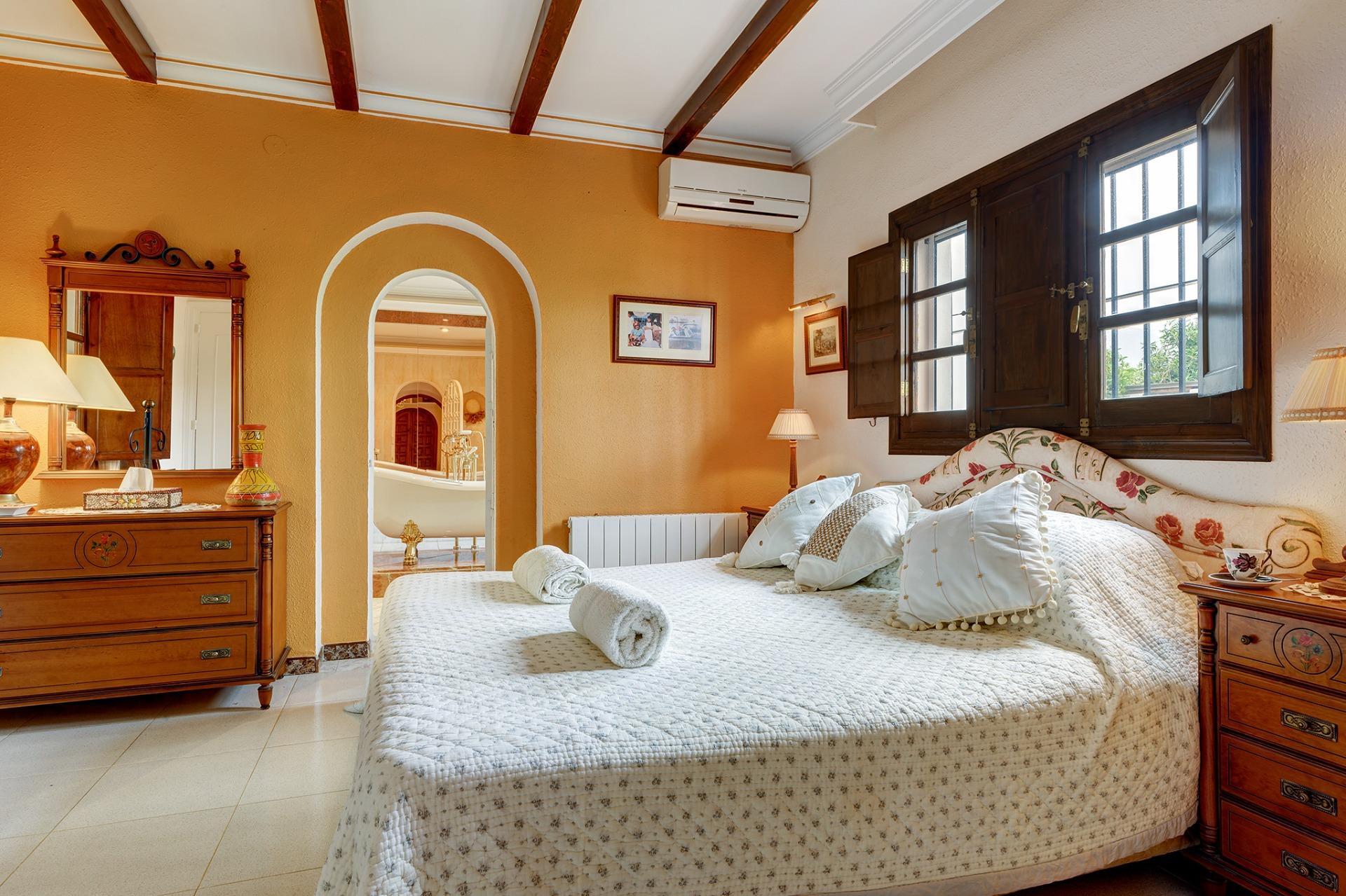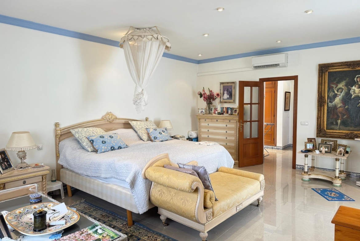 La villa principal consta de 3 habitaciones muy amplias con baños en suite y extremadamente luminosas, decoradas con exquisito gusto en un estilo rústico /clásico que resalta la elegancia y sofisticación. Los grandes espejos y los accesorios de baño de altísima calidad completan un ambiente de lujo y confort inigualable.