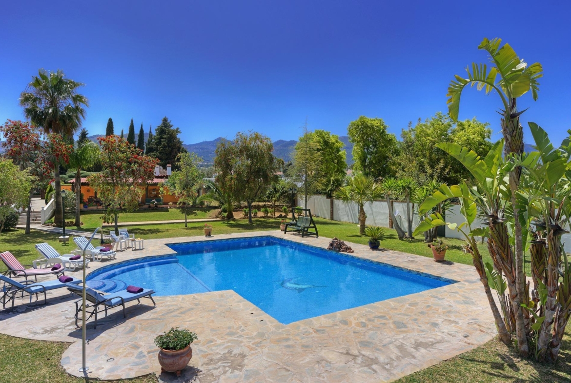 Descubre esta impresionante villa de lujo en Málaga, un verdadero paraíso para los amantes de la elegancia y el confort. Situada en una extensa parcela de mas de 15.230m², y 723m de construcción, esta propiedad ofrece un entorno de ensueño con amplios jardines, patios andaluces, y terrazas decoradas con mosaicos que evocan el encanto tradicional de la región.