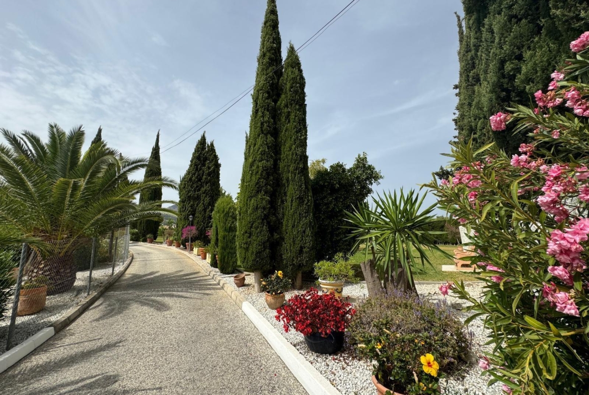 La villa cuenta con tres grandes piscinas, perfectas para disfrutar del sol mediterráneo, y pérgolas de madera que proporcionan acogedores espacios para relajarse al aire libre. Uno de los puntos de esta villa es un gran mirador, desde el cual se puede disfrutar de las zonas ajardinadas, piscinas, y de unas vistas despejadas que abarca la inmensidad de las montañas y el campo, un auténtico lujo. Además, dispone de cenadores ideales para disfrutar de cenas al aire libre con vistas a los jardines.
