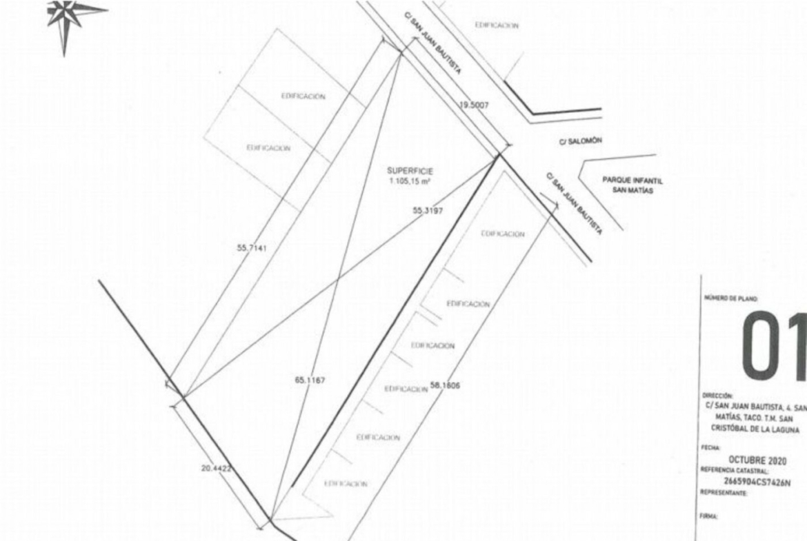 El solar se encuentra ubicado en la zona de San Matías, perteneciente al municipio de San Cristóbal de La Laguna.