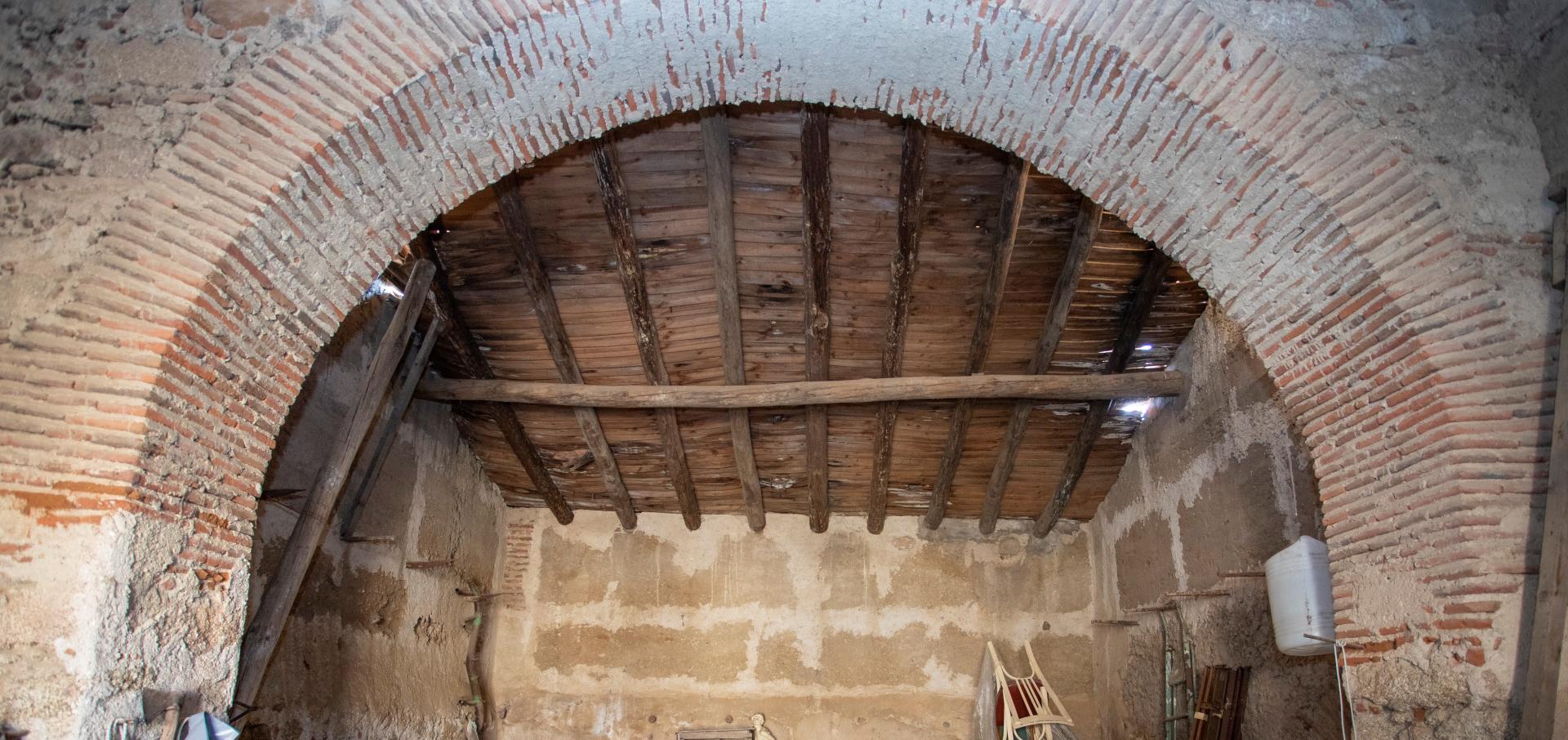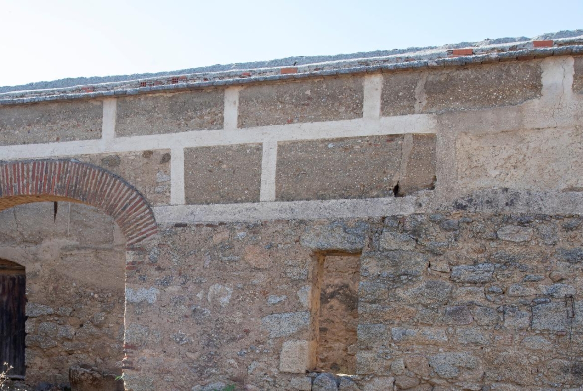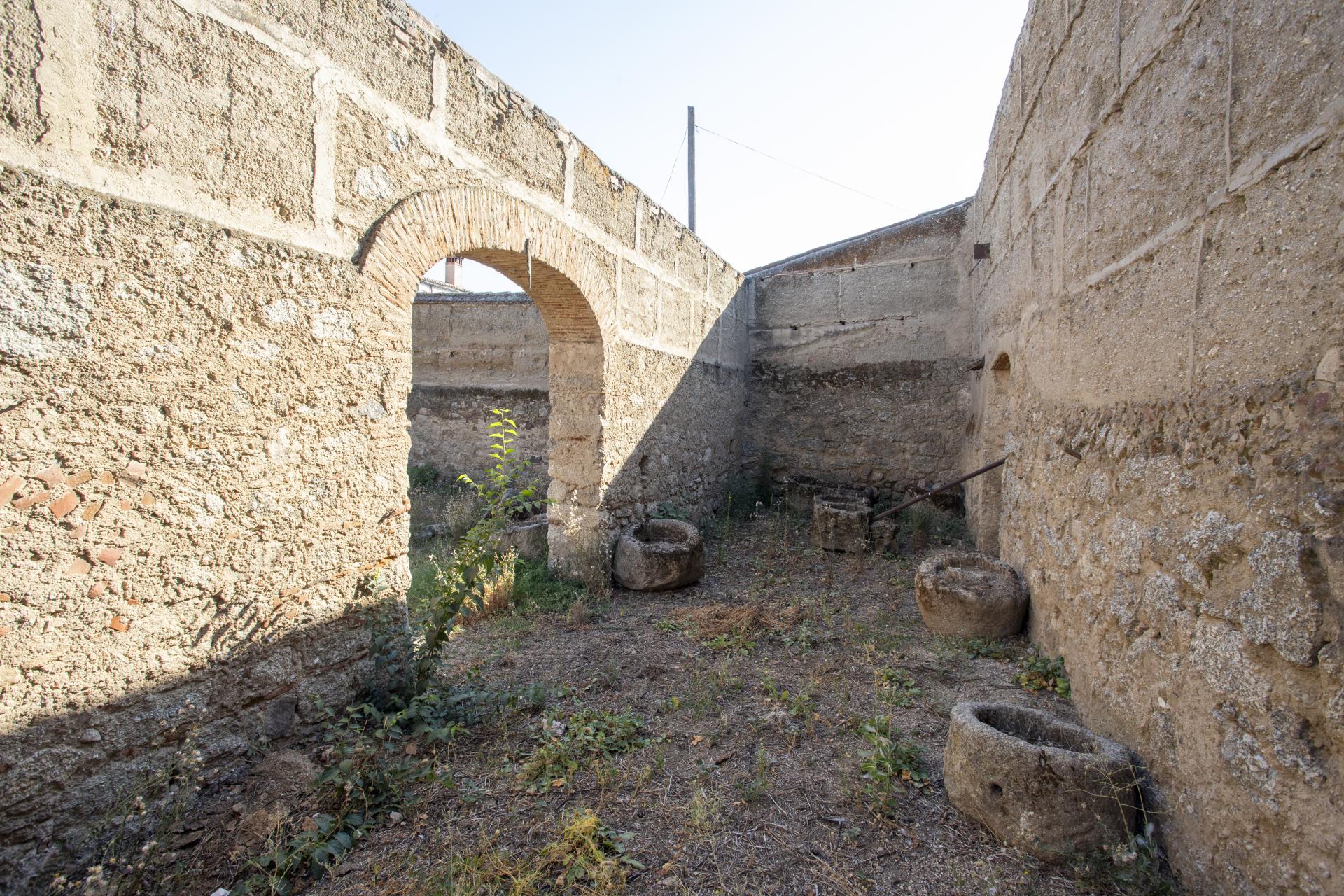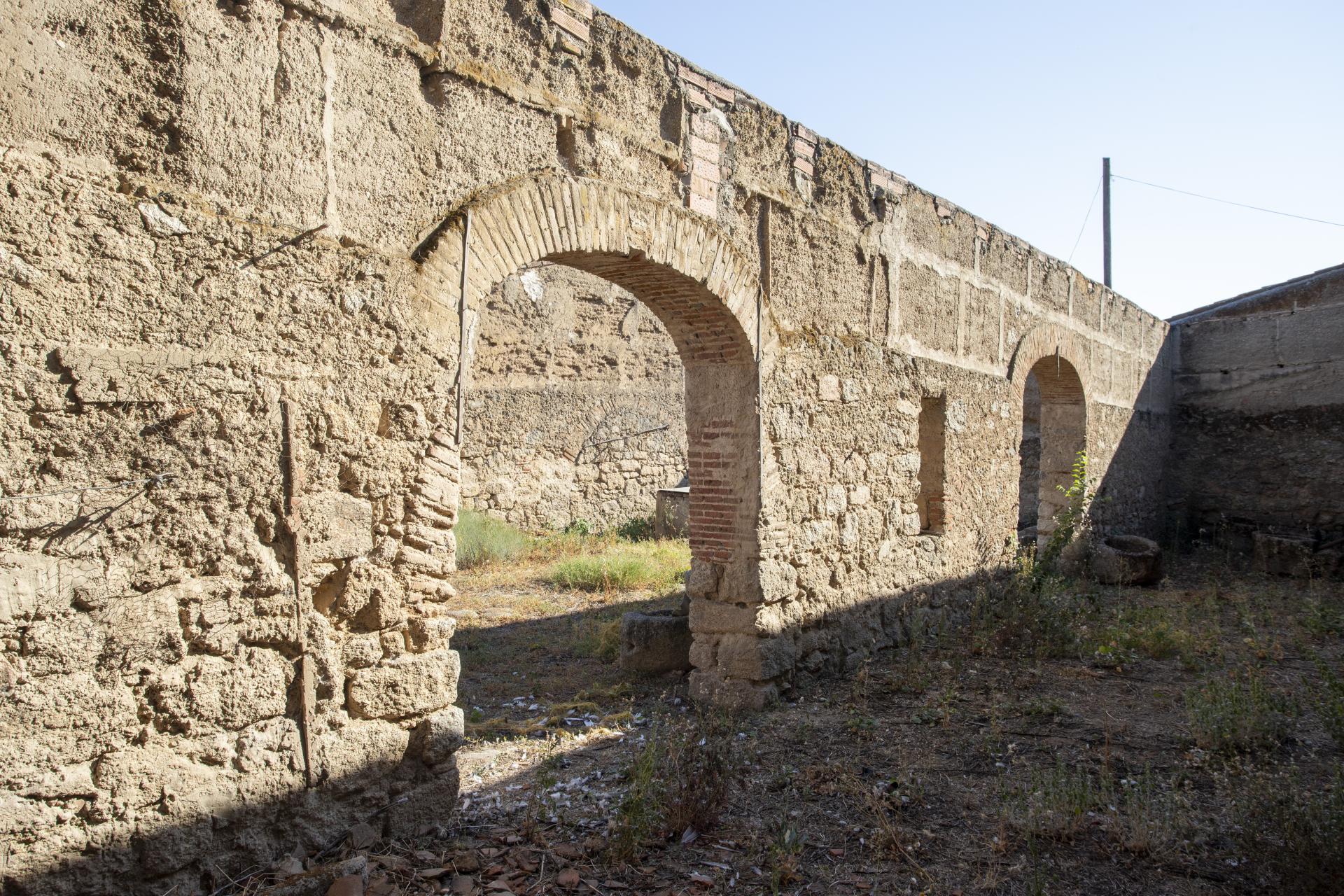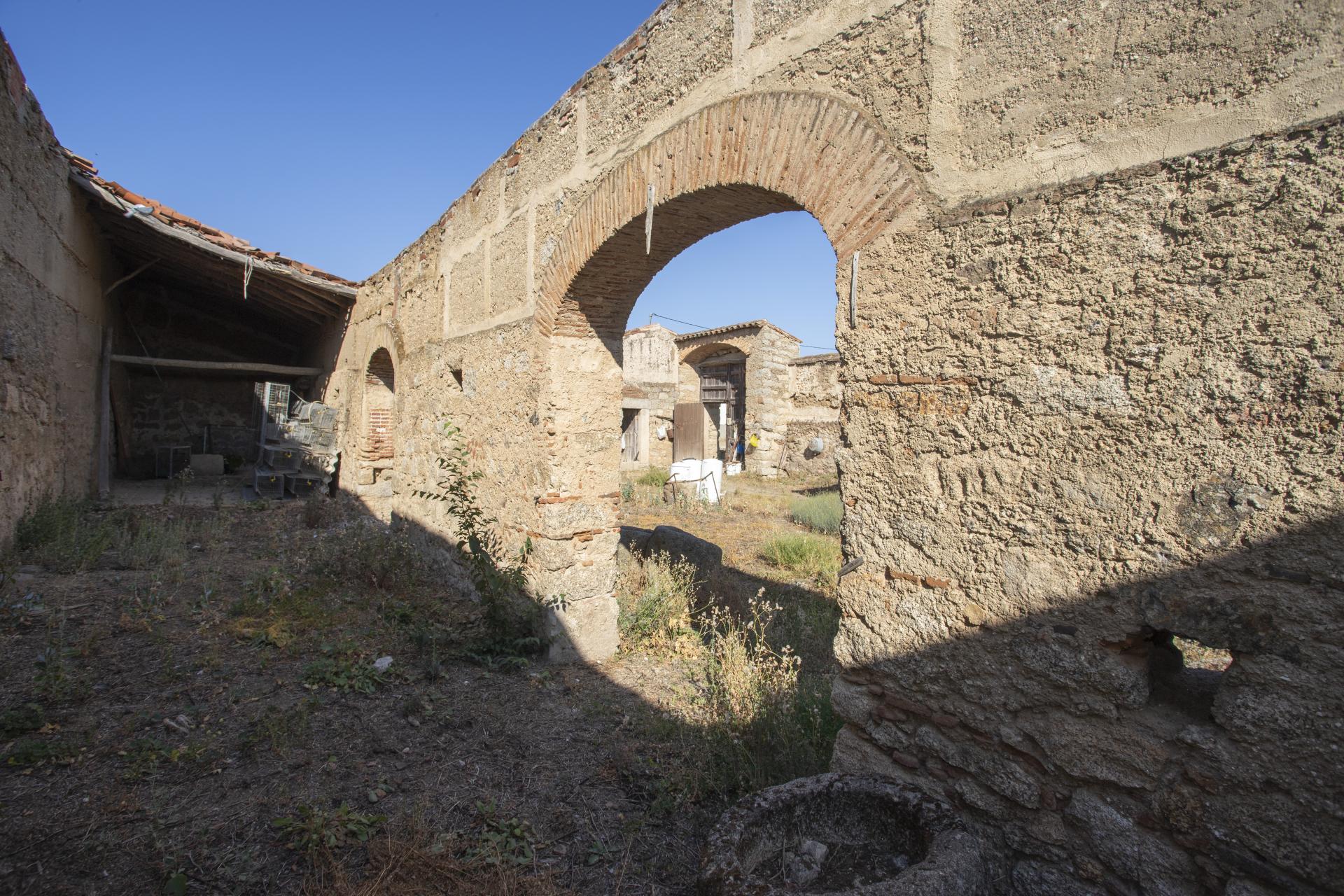 Destaca su gran portón de entrada, el pozo y los arcos de ladrillo de las construcciones.