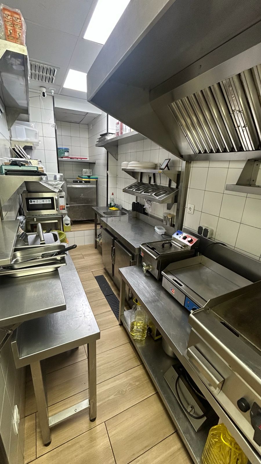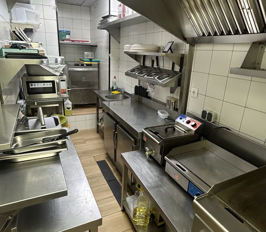 El local cuenta con todas las comodidades necesarias para operar de inmediato: sistema de extracción de humos, cocina totalmente equipada, amplia zona de almacenamiento con refrigeradores y congeladores adicionales, dos aseos para clientes, aseos para empleados y una zona de clientes dividida en tres espaciosas salas.