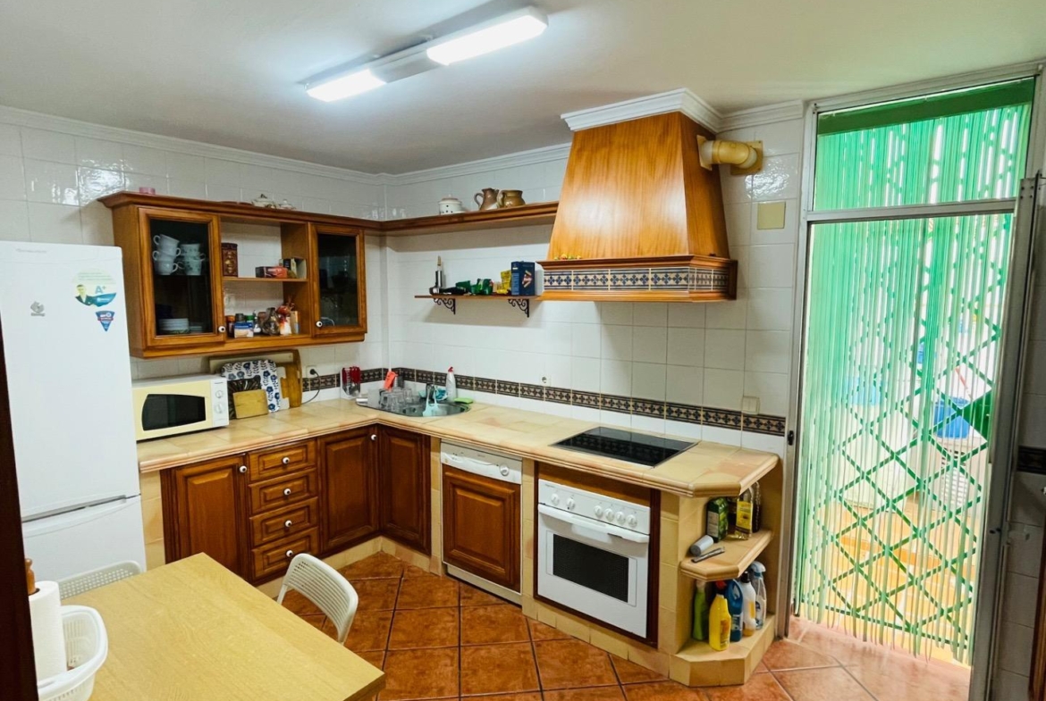 La cocina es un espacio acogedor y totalmente equipado, complementado con una útil zona de lavandería. El salón amplio se conecta con una agradable veranda, un lugar ideal para tomar un café por la mañana disfrutando del sol.