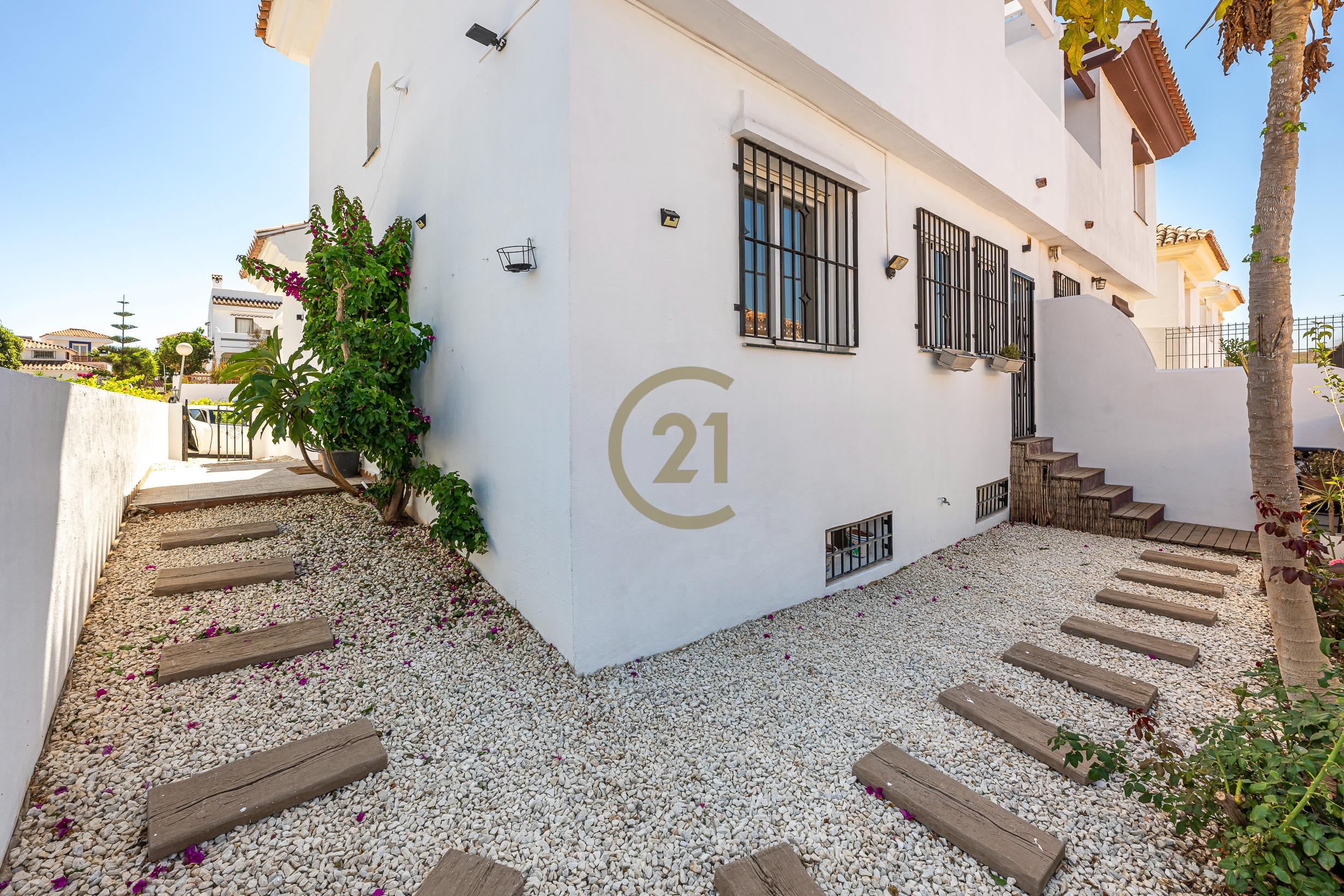 Century 21 Sun te da la bienvenida a este excepcional chalet pareado en venta en la Urbanización Princesa Kristina, en el encantador Alcorrín, Manilva. Imagina despertar cada mañana en un lugar donde el sol te acaricia suavemente y la brisa marina te envuelve en un abrazo fresco.