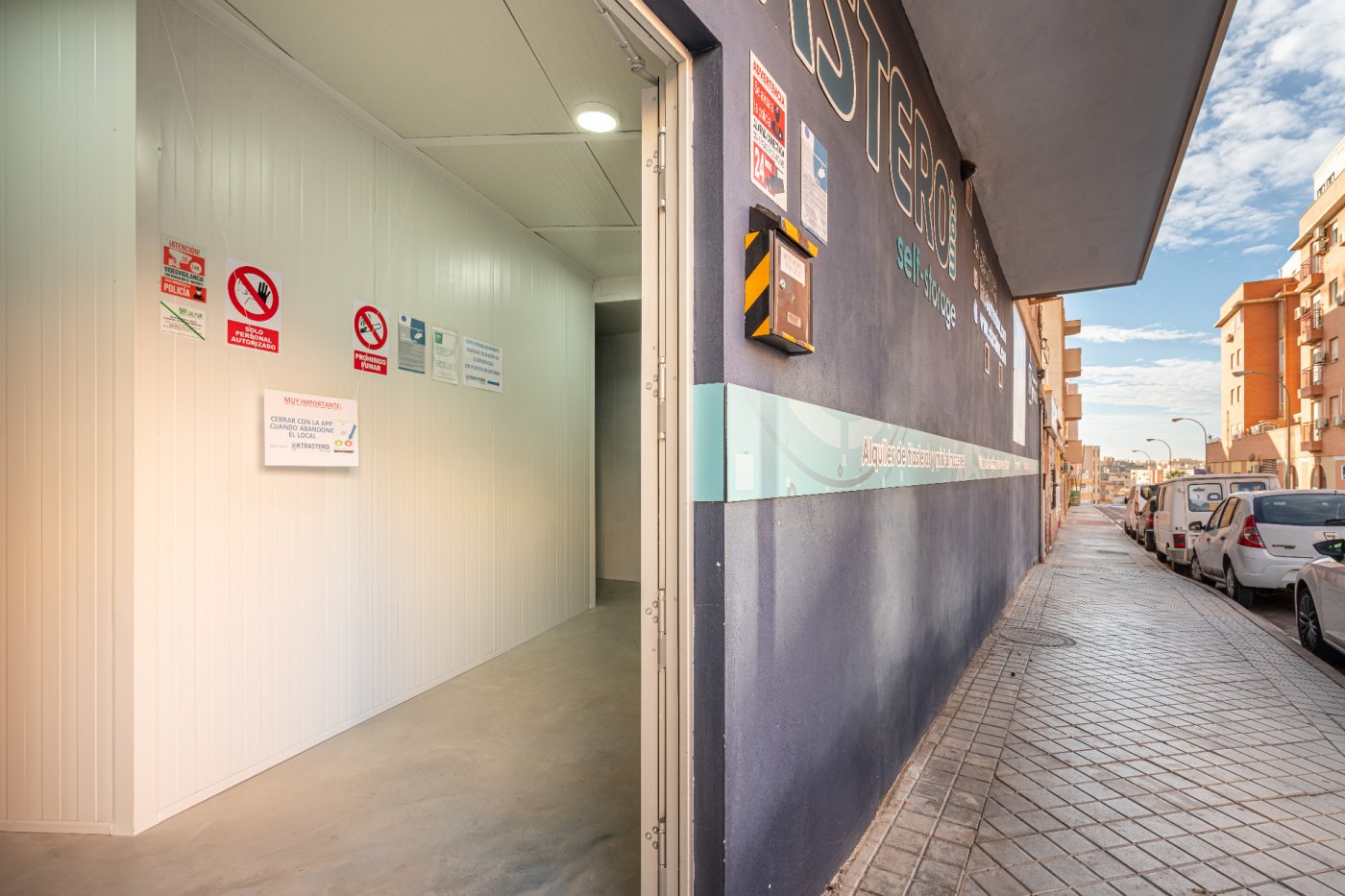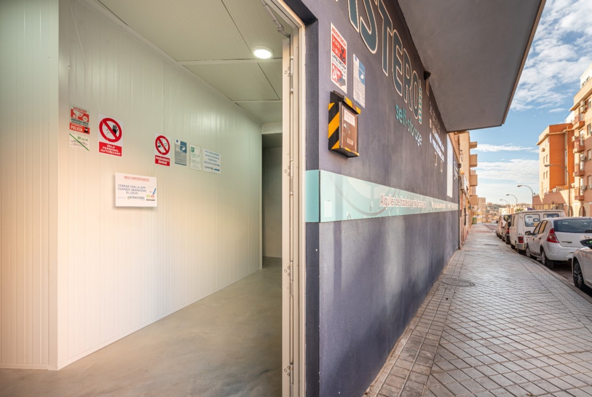 Este negocio de trasteros y mini almacenes, yace sobre un local comercial de 283 m2, construidos, teniendo su entrada por la C/ Travesía de San luis , haciendo esquina con la C/ Gaviota, su diseño interior hace que la distribución de sus trasteros y mini almacenes, sea cómodo , de fácil acceso para los clientes, además de su alta calidad en los materriales utilizados para el montaje de los trasteros, “polioretano y