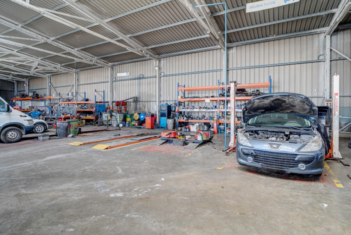 Una nave de 1000 m2 actualmente acondicionada y en funcionamiento como taller de coches y camiones.
