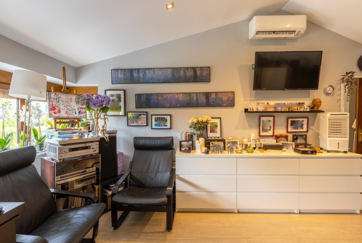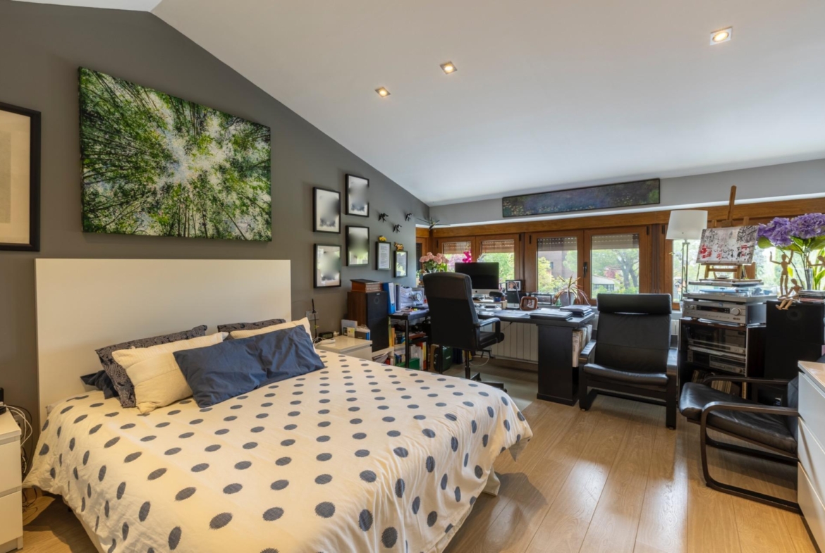 – Altillo con habitación y aseo con vistas espectaculares al jardín.