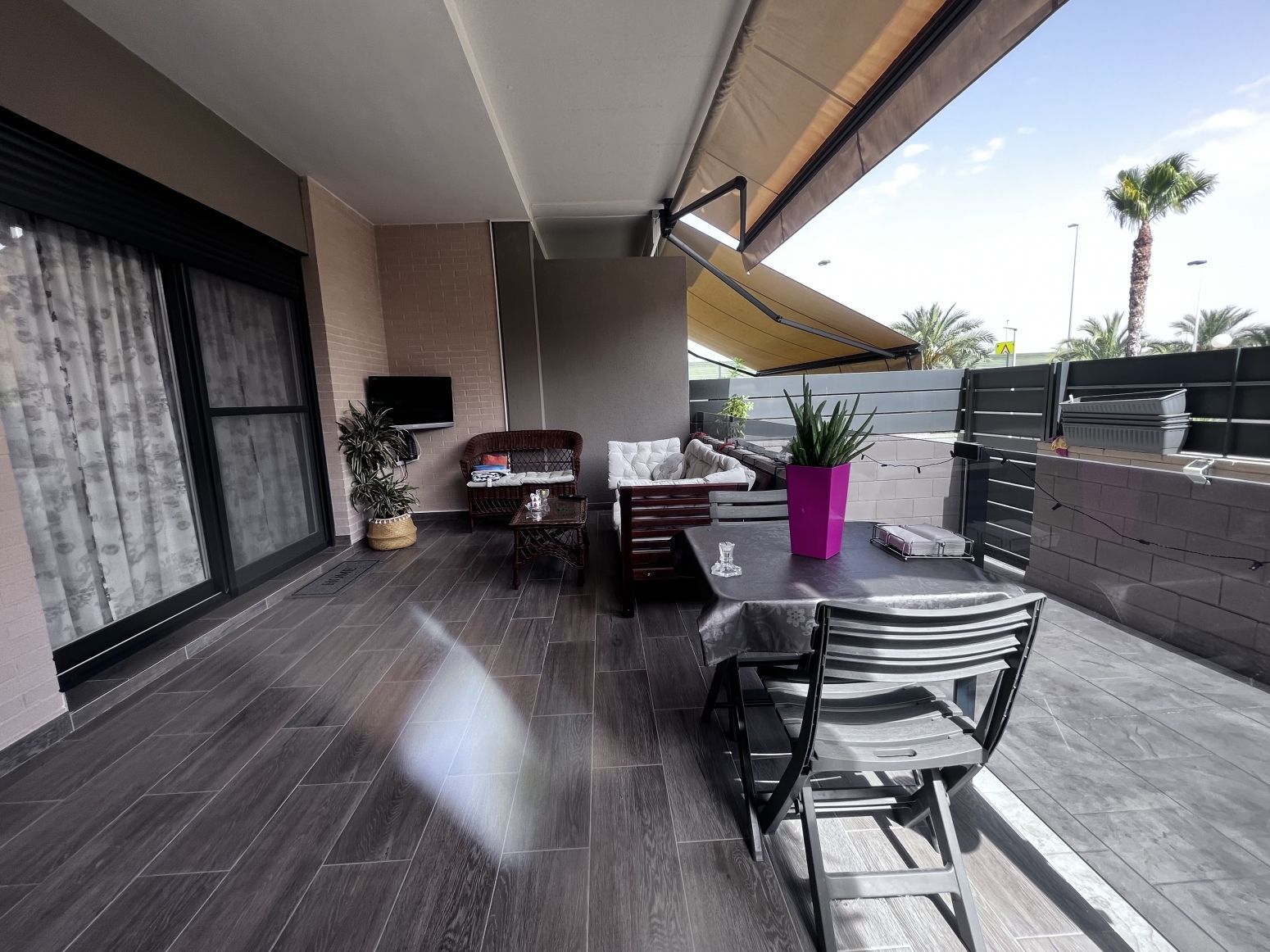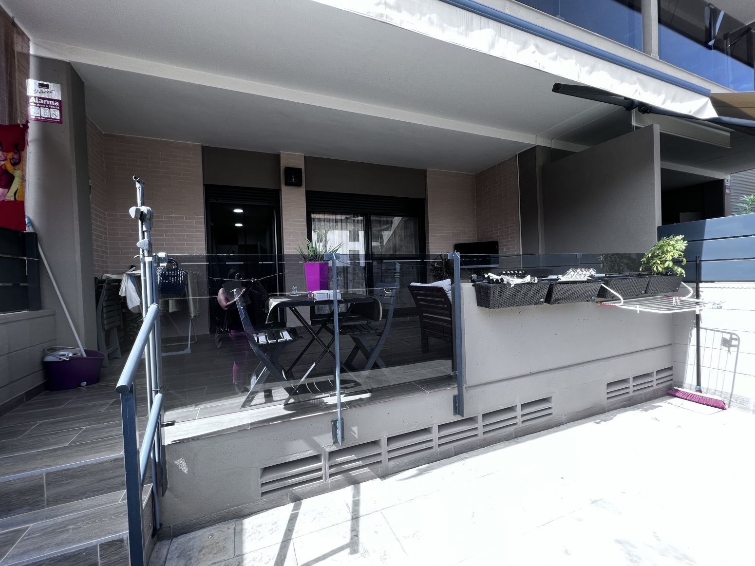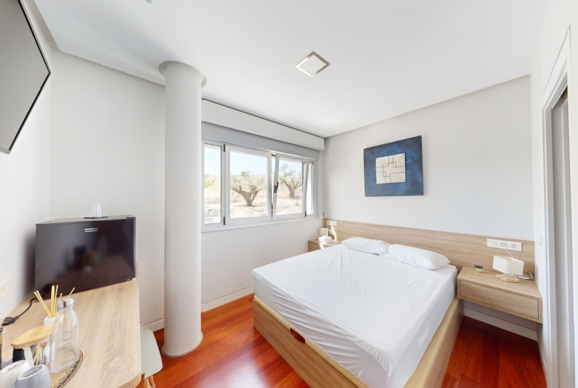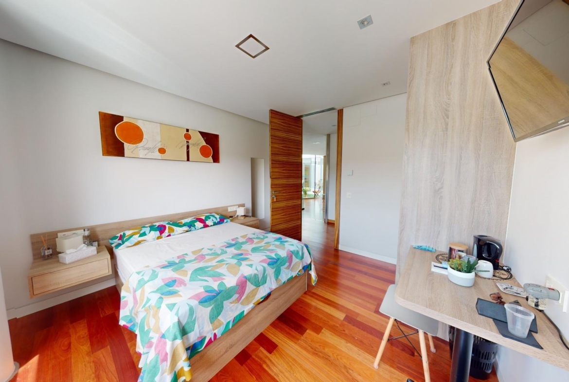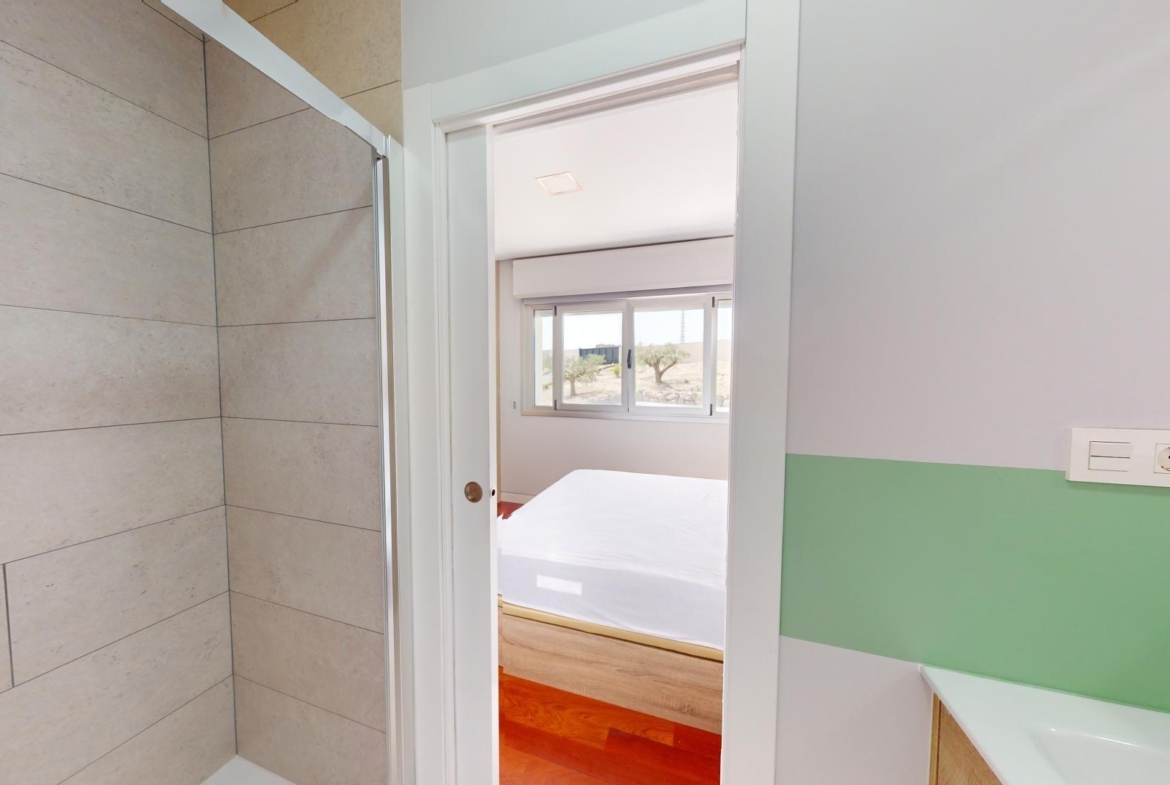 En la planta baja tenemos tres dormitorios con baños en suite, un aseo de cortesía, una cocina independiente, una sala de estar principal, otra sala de estar, dos grandes terrazas y una terraza interior. En esta planta también hay un apartamento adicional con dos dormitorios y un baño.