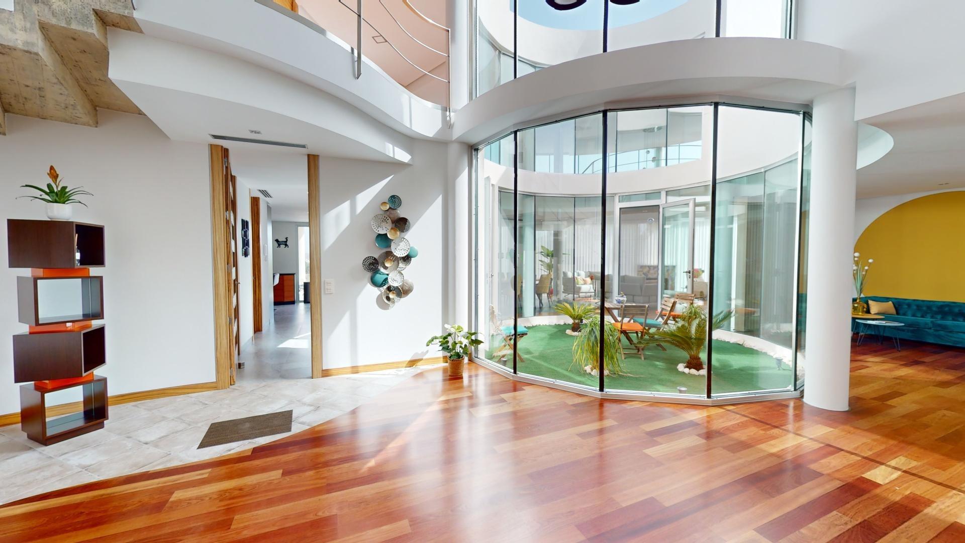 La villa tiene una superficie construida de 925 m² y se encuentra en un terreno de 16,694 m². Incluye seis dormitorios, cada uno con baño en suite, y un aseo de cortesía.