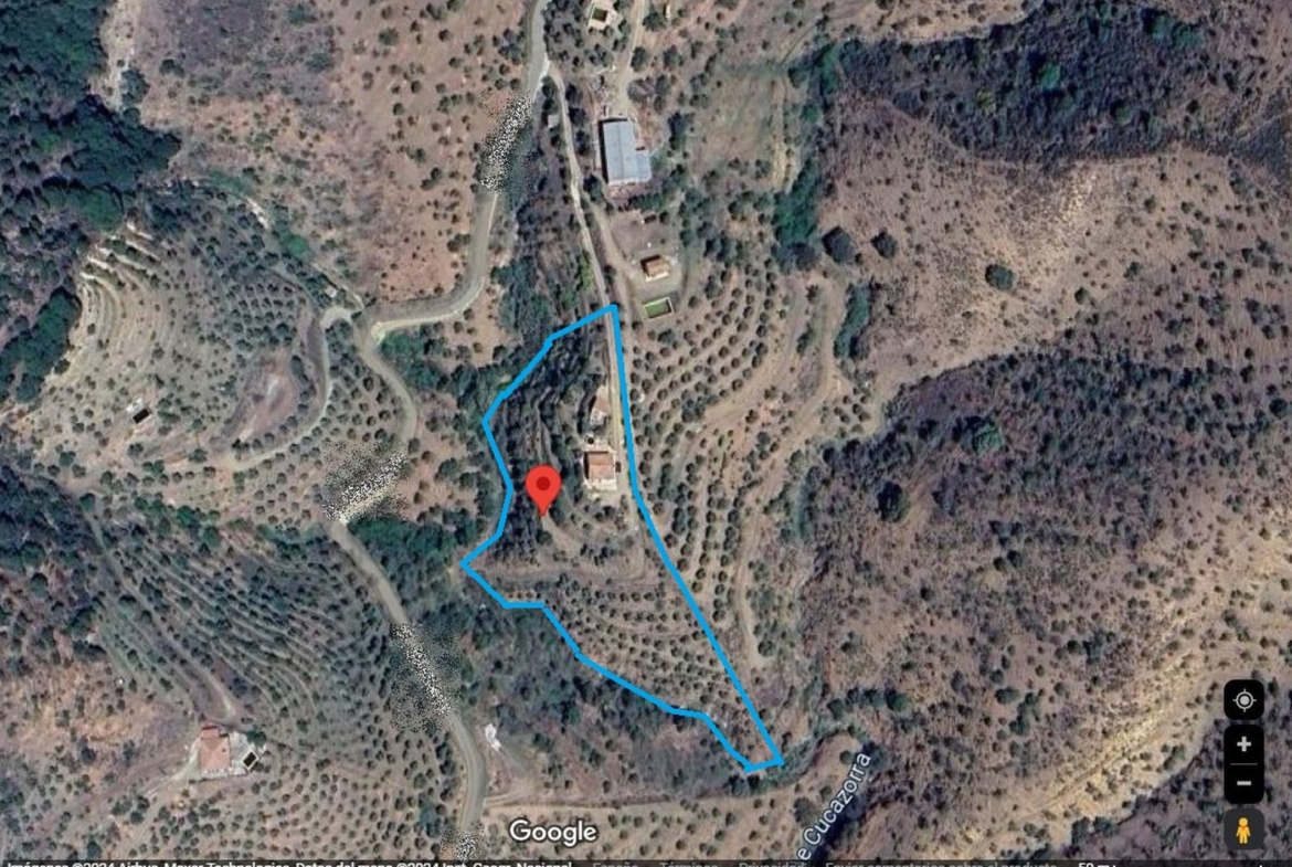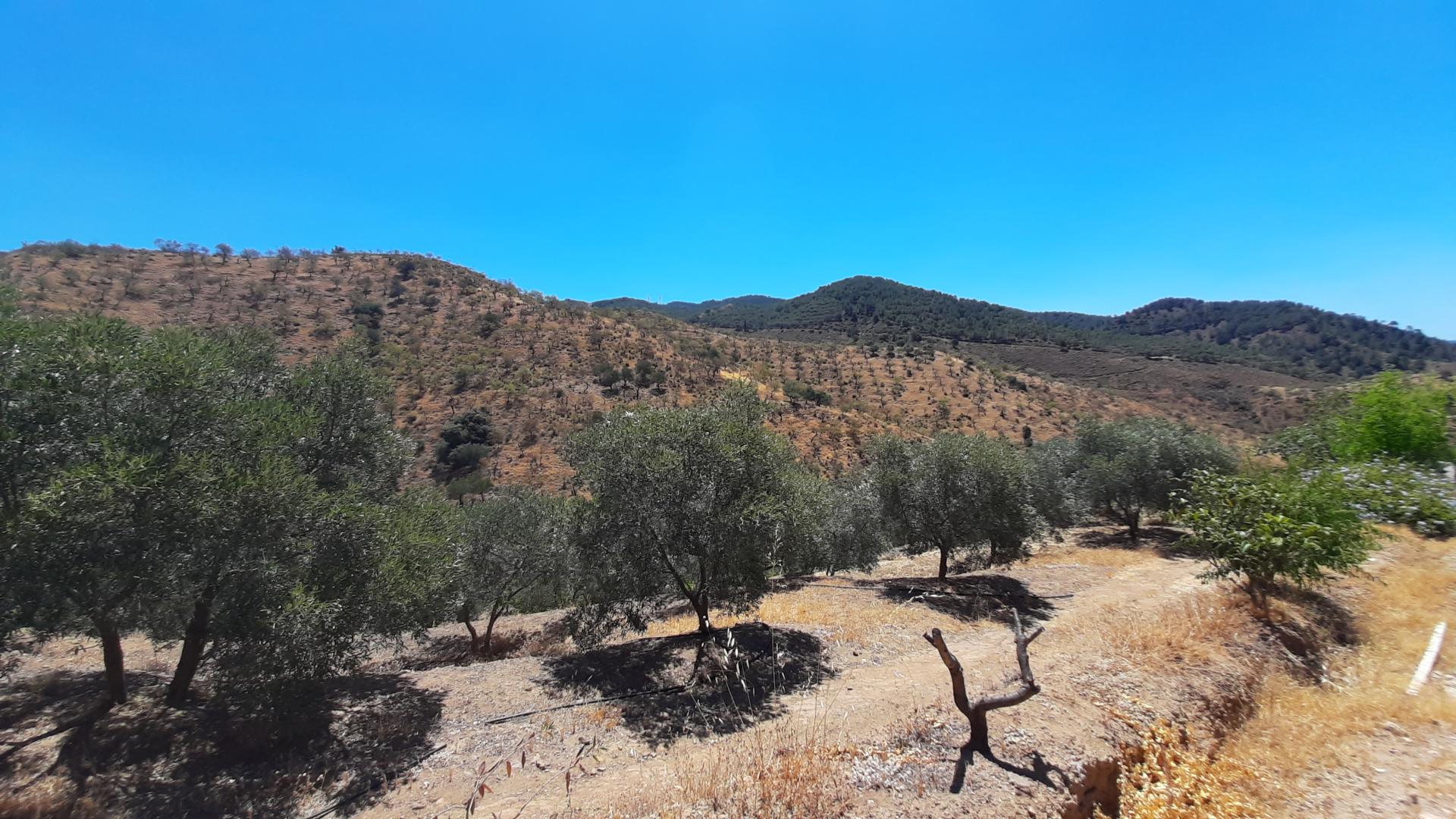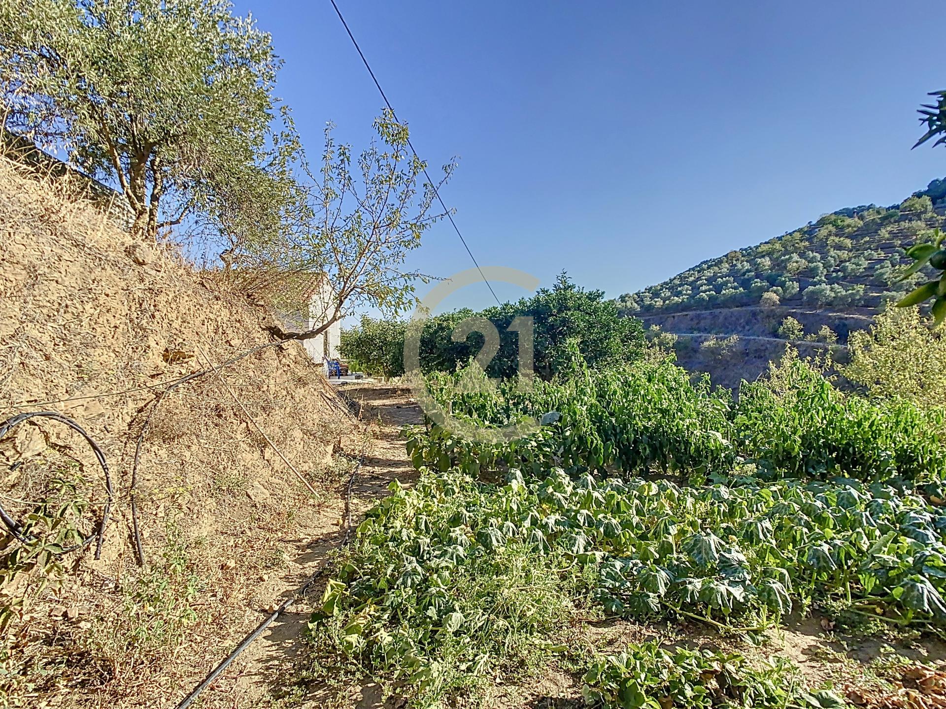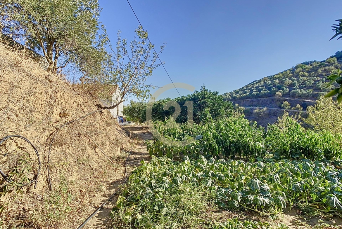 Esta Finca ofrece un terreno de 7.726 m2 que se distribuyen en una zona de huerto más pequeña, con verduras de temporada y el resto del terreno cuenta con unos 300 árboles de diferentes tipos, donde predominan los 110 olivos, además de contar con Nectarinos, Manzanos, Naranjos, Limoneros, Almendros y Aguacates.