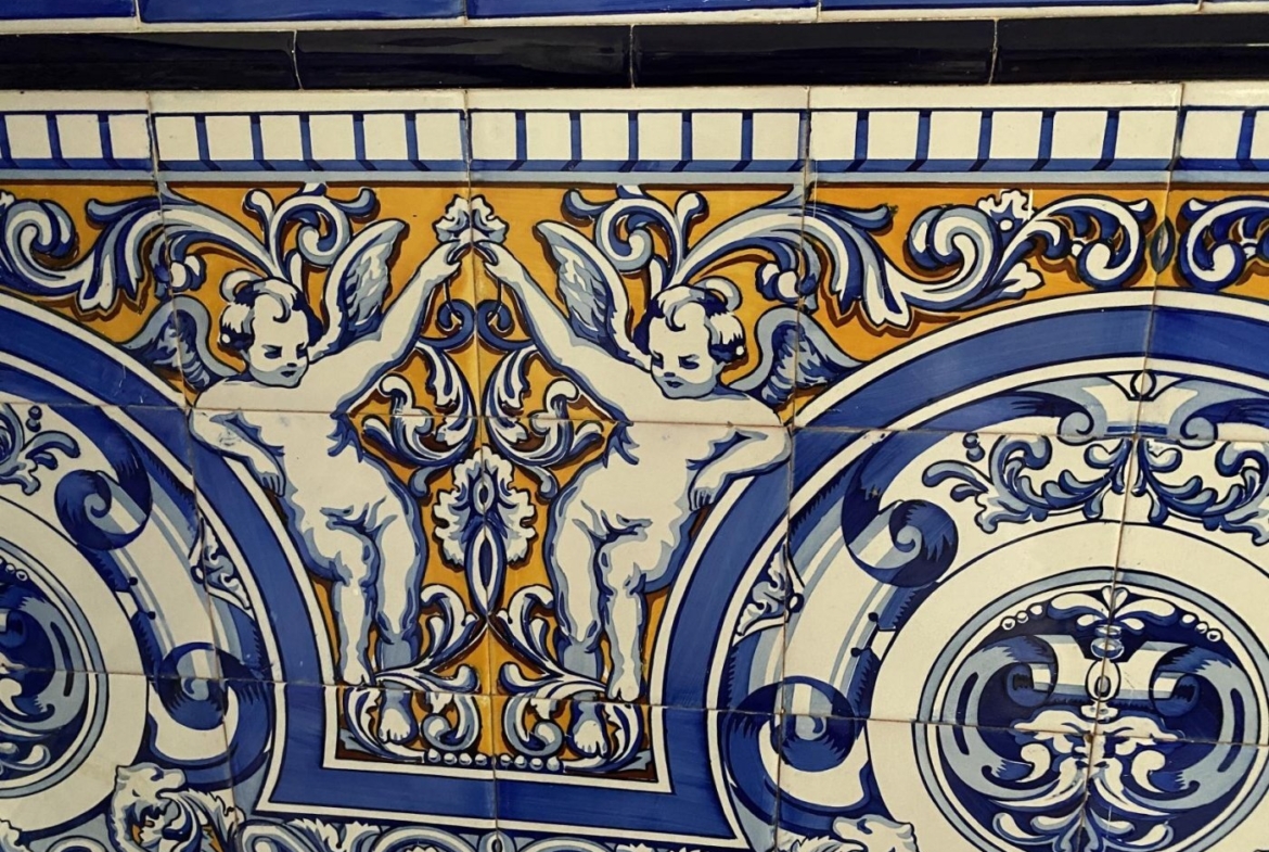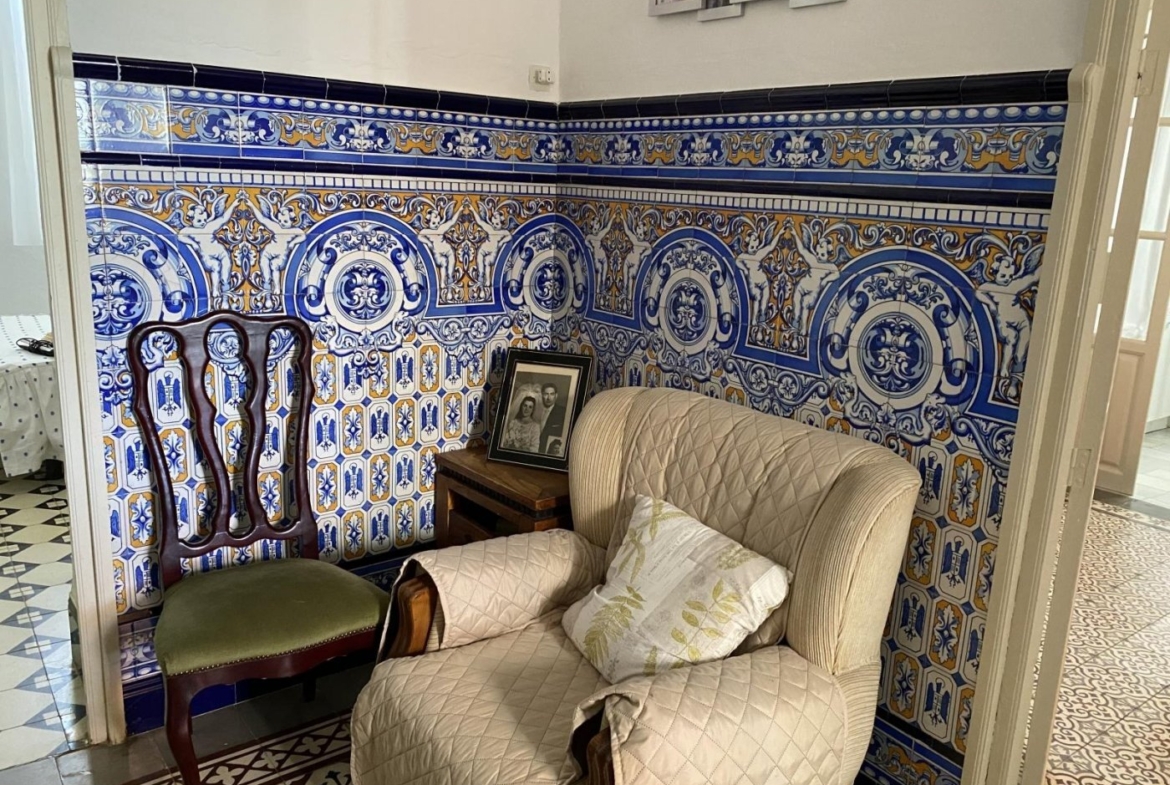 La azulejos sevillanos revisten parte de las paredes de algunas estancias de la casa, siendo destacables por su valor y diseño los del zaguán y los del salón principal de la vivienda.