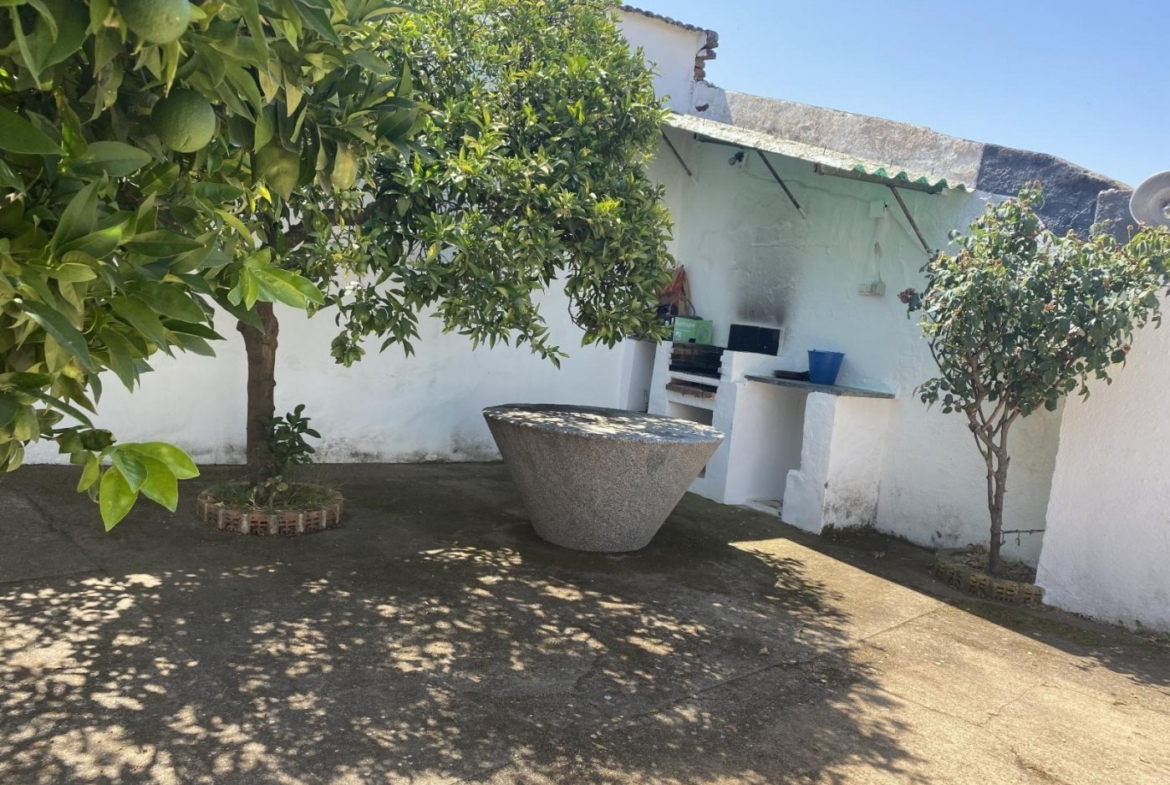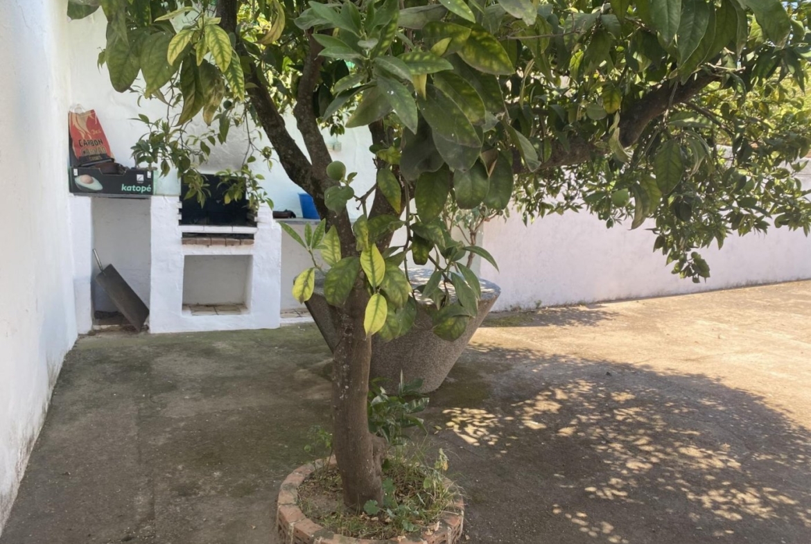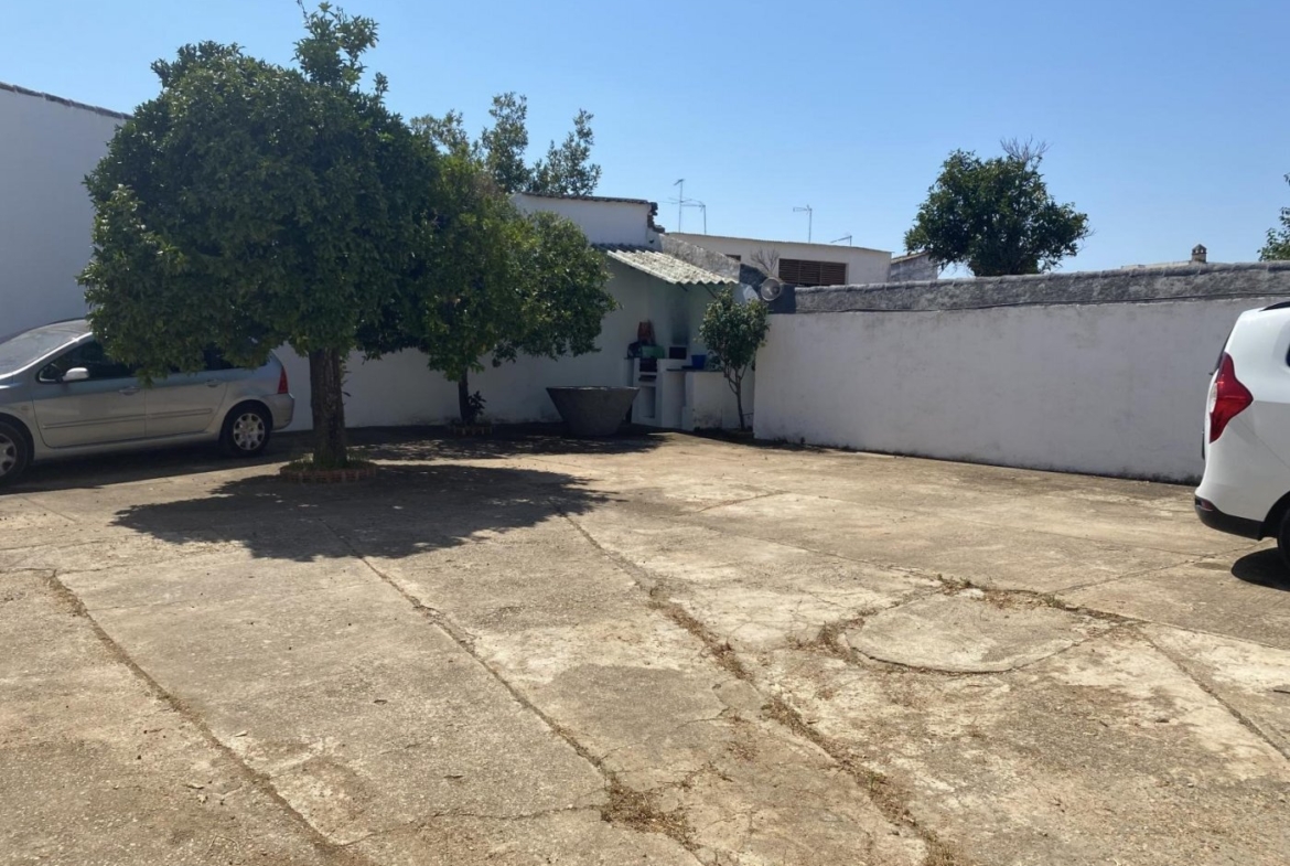 El resto del solar es un amplio espacio libre con dos naranjos, una barbacoa con mesa de piedra de granito ,almacén y garaje cubierto. Tiene pre-instalación para piscina y depuradora. A esta zona podemos acceder desde el patio que está a continuación de la cocina y también directamente desde la calle a través de una cancela metálica con tamaño suficiente para permitir el acceso de vehículos por la misma. Cuenta con vado de acceso en el acerado y chapa de prohibición de estacionamiento.